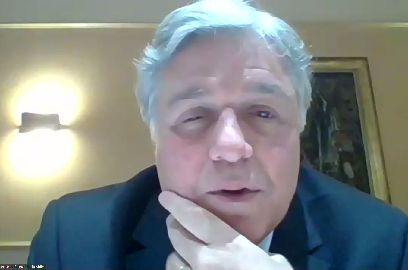Ángel Durandez comienza el coloquio dando la palabra a un invitado muy especial, el Ministro de Relaciones Exteriores de Uruguay, país presidente pro tempore de Mercosur, don Francisco Bustillo: Su reflexión se refiere a la situación de un mundo que se está fragmentando mientras que la UE y Mercosur tienen entre manos un muy buen acuerdo cuyas negociaciones después 20 años culminaron en junio del año pasado y sin embargo, transcurrido el tiempo aún no se ha firmado. Entonces, yo me pregunto” ¿cómo se compadece ese multilateralismo que pregona la Unión Europea, que me consta que encarna en la figura de Josep Borrell, cómo se compadecen esas dificultades que tenemos para firmar el Acuerdo Unión Europea-Mercosur?”, por su parte José Ignacio Salafranca pregunta al Vicepresidente si sería realista, sustituir la red de acuerdos bilaterales y regionales que tenemos por un amplio acuerdo que de cobertura geográfica completa a la relación. La cooperación no debería plantear un problema, los aspectos de asociación tampoco. Me pregunto, si para facilitar la firma del Acuerdo con Mercosur y permitir el proceso de ratificación en el Parlamento Europeo, se contempla dividir el Acuerdo en función de la parte comercial y otra en la parte mixta para abrir ese proceso de ratificación?