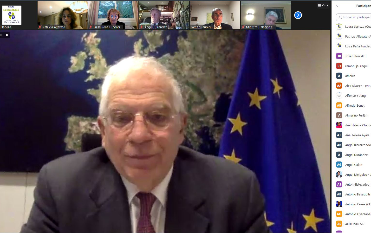 Comienza Josep Borrell recordando que hace exactamente un año que entró en función la nueva Comisión Europea y desde entonces se está trabajando, desde el punto de vista temático, en tres grandes prioridades políticas: La dimensión green, el plan de la Unión Europea hacia una economía más sostenible para hacer frente al cambio climático; el digital, la transformación digital de nuestra economía garantizando que no perderemos el tren de las nuevas tecnologías y que estas no van a provocar nuevos elementos de descohesión social, de ruptura de la cohesión social, más desigualdad y el tercero es una Europa más fuerte en el mundo capaz de hacer frente a las nuevas circunstancias o desafíos geopolíticos y hemos de ver si tenemos la voluntad y los medios necesarios para llevar a cabo esta tercera misión, fácil de enunciar pero más difícil de aplicar.