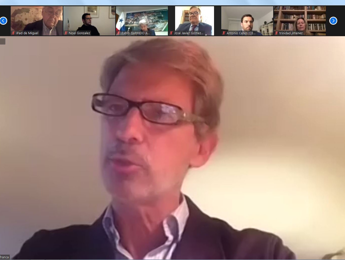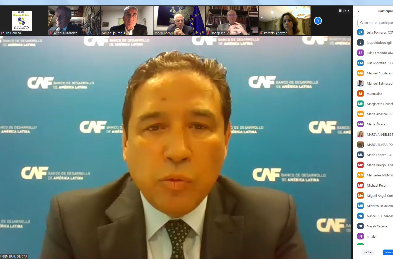 Víctor Rico, Secretario General de CAF , patrocinador del informe : Inicia sus palabras diciendo que la crisis del Covid no solamente ha mostrado las falencias estructurales de los países de ALC en materia de su sistema de salud, sus sistemas públicos y problemas como la informalidad sino que también ha mostrado las debilidades y las carencias de sus esquemas de integración. Más allá de algunas iniciativas muy puntuales, no se ha podido ver una acción colectiva para enfrentar la pandemia. En este escenario complejo y de incertidumbre resulta aún más necesario fortalecer la cooperación transatlántica y en particular la cooperación en la dimensión iberoamericana.