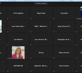 Habla María Salvadora Ortiz en representación SEGIB y agradece a la Fundación Euroamérica, a la CAF y a la FIE por el informe “que va a ser un insumo muy importante para la Cumbre Iberoamericana”, reiterando la invitación al Sr. Borrell a la misma en abril. Finaliza también agradeciéndole la invitación a la Secretaria General a la reunión ministerial de Alemania