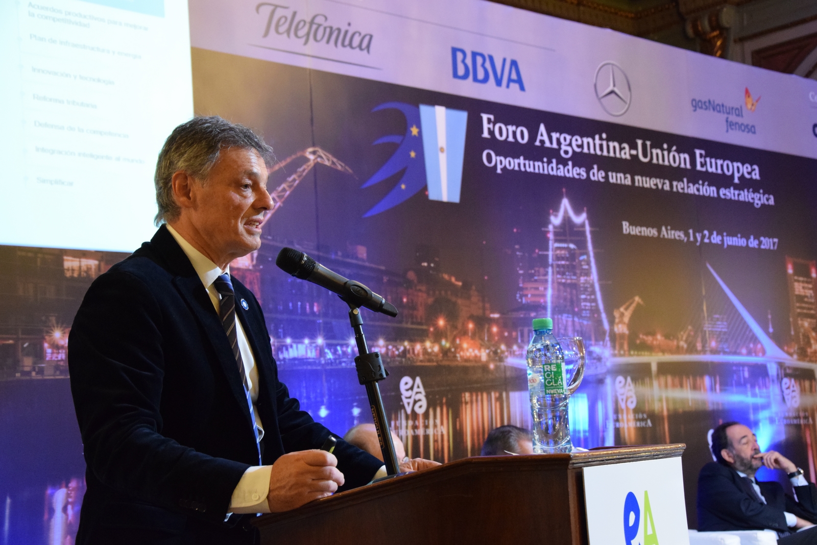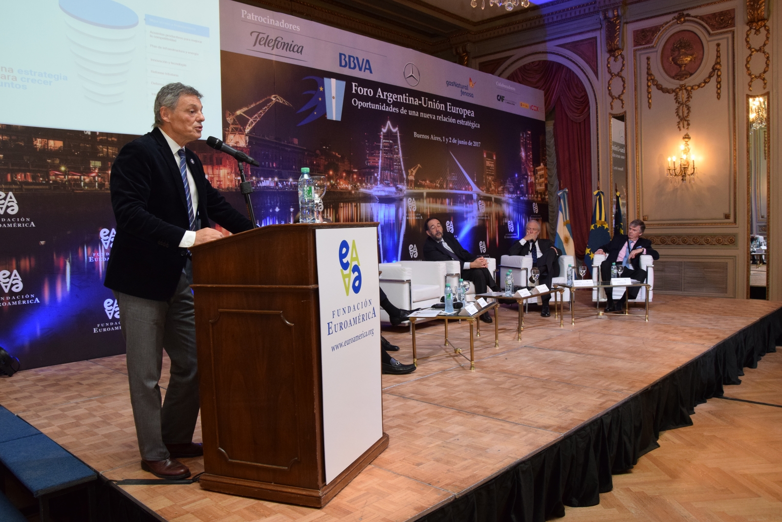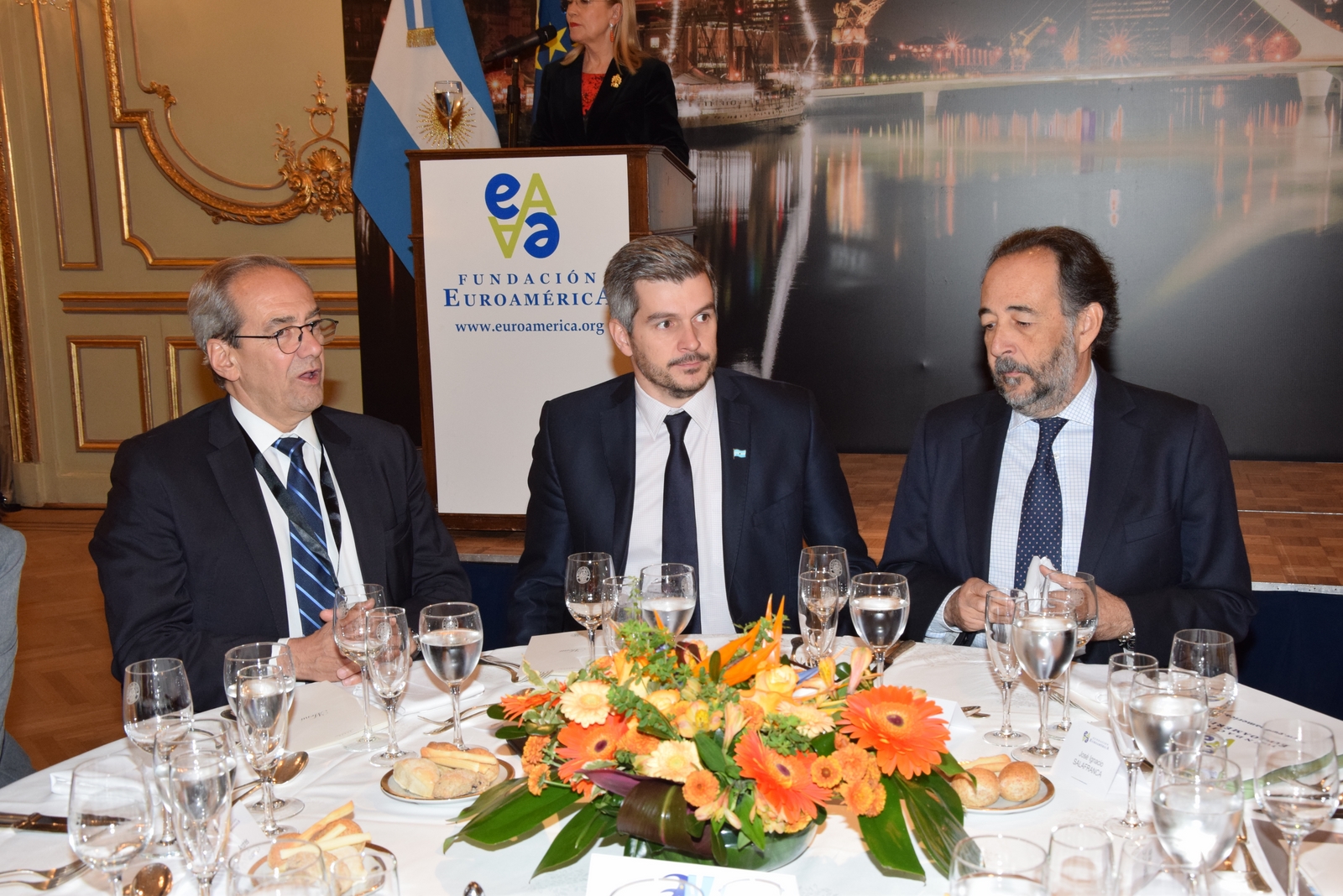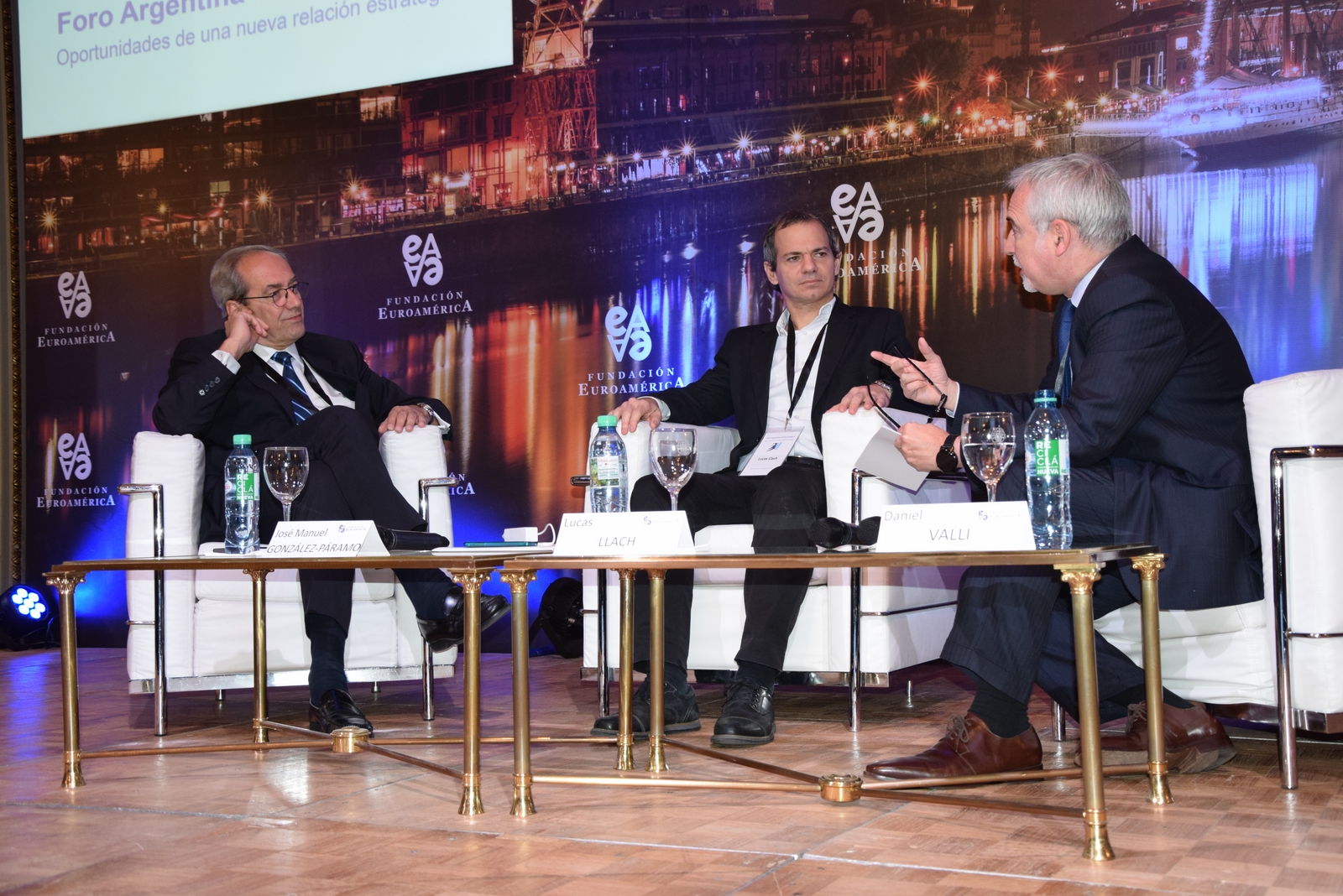 Hizo hincapié en las oportunidades que se presentan en todos los sectores, destacando el de infraestructuras básicas; el de energía con el desarrollo de la matriz energética- especialmente renovable y gasista -; el de minería con todo su potencial, citando específicamente el litio; y la capacidad de producción de alimentos. Resaltó la oportunidad de invertir en Argentina en el momento actual, destacando como socio estratégico a Europa, no sólo por la afinidad cultural e histórica, sino por su desarrollo en sectores como infraestructuras, energías o transportes, resaltando la importancia de la transferencia de tecnología. Como dato indicó que el 40% de los 60.000 millones de dólares anunciados de inversión en Argentina este último año pertenecen a compañías europeas.