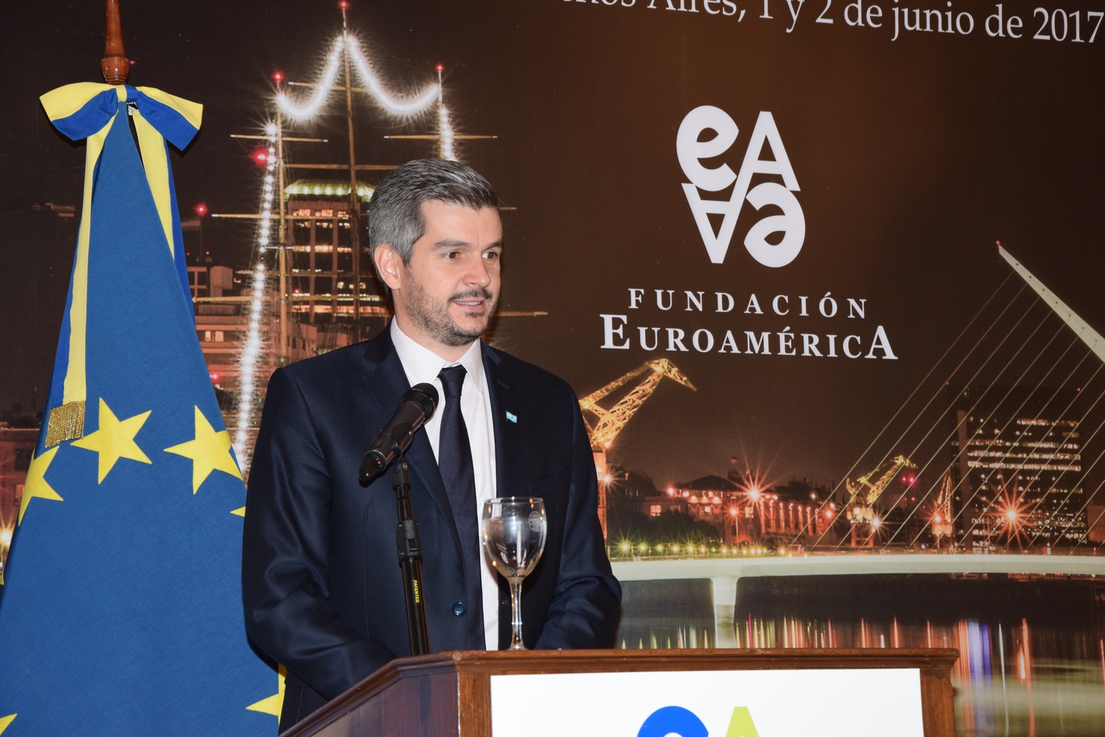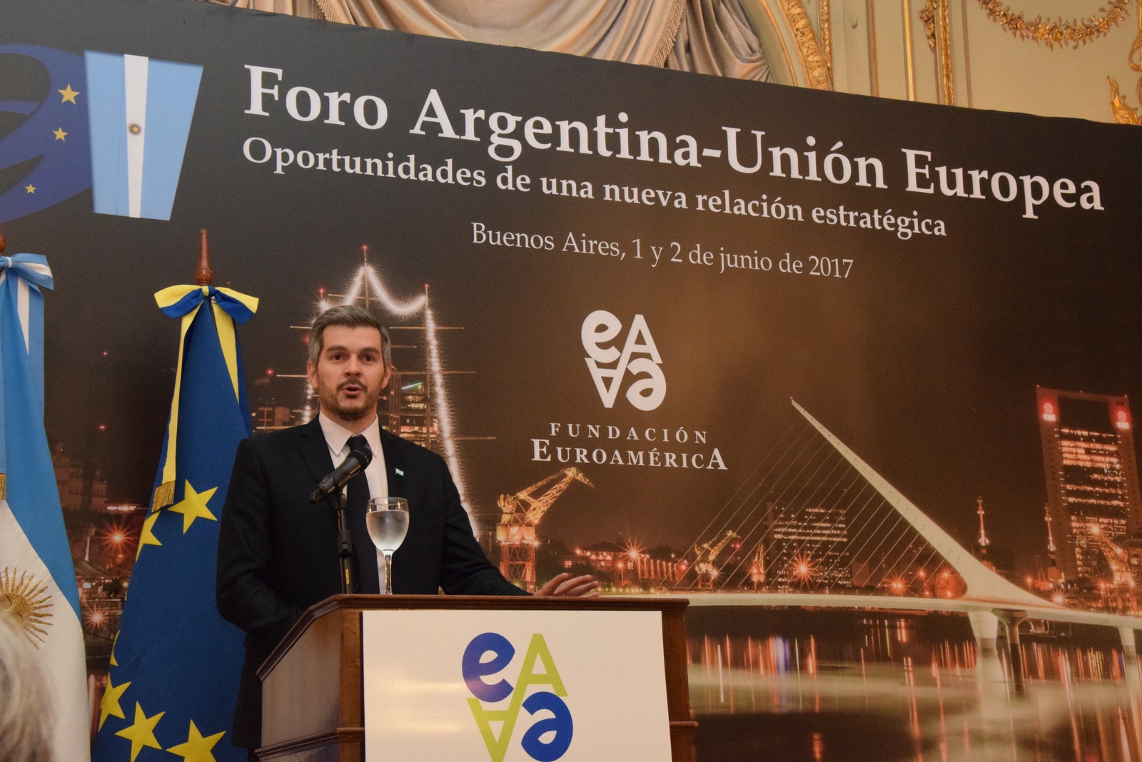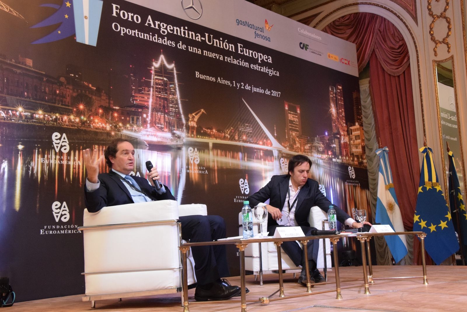 Hizo hincapié en las oportunidades que se presentan en todos los sectores, destacando el de infraestructuras básicas; el de energía con el desarrollo de la matriz energética- especialmente renovable y gasista -; el de minería con todo su potencial, citando específicamente el litio; y la capacidad de producción de alimentos. Resaltó la oportunidad de invertir en Argentina en el momento actual, destacando como socio estratégico a Europa, no sólo por la afinidad cultural e histórica, sino por su desarrollo en sectores como infraestructuras, energías o transportes, resaltando la importancia de la transferencia de tecnología. Como dato indicó que el 40% de los 60.000 millones de dólares anunciados de inversión en Argentina este último año pertenecen a compañías europeas.