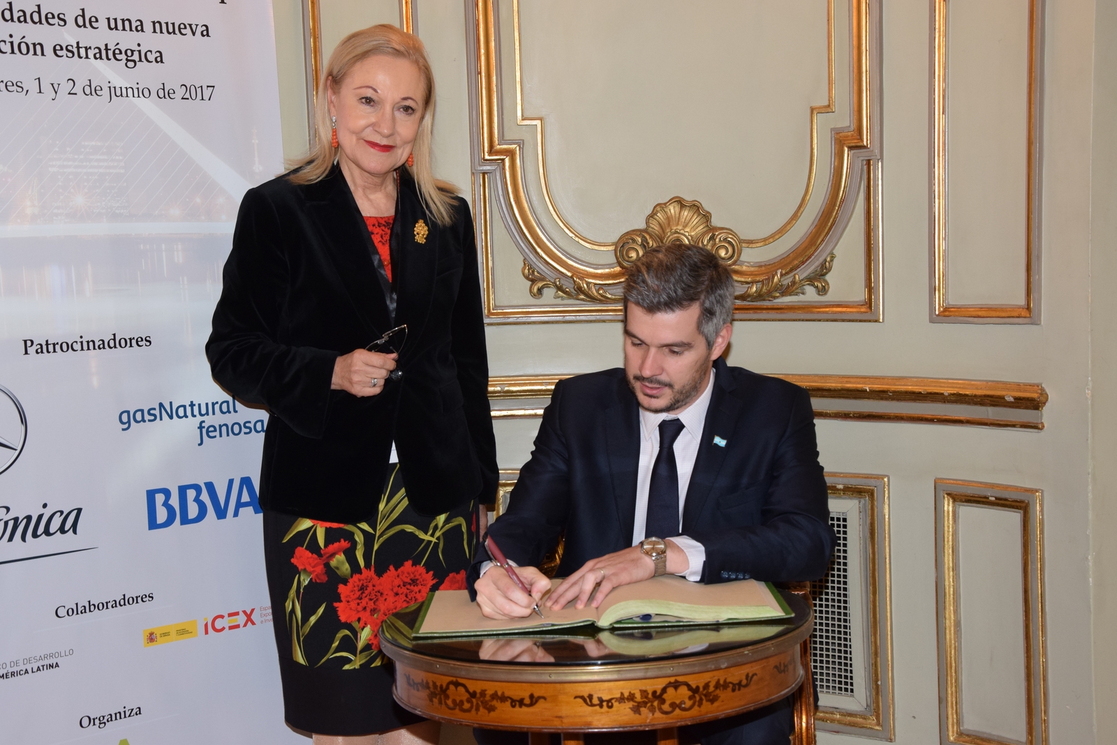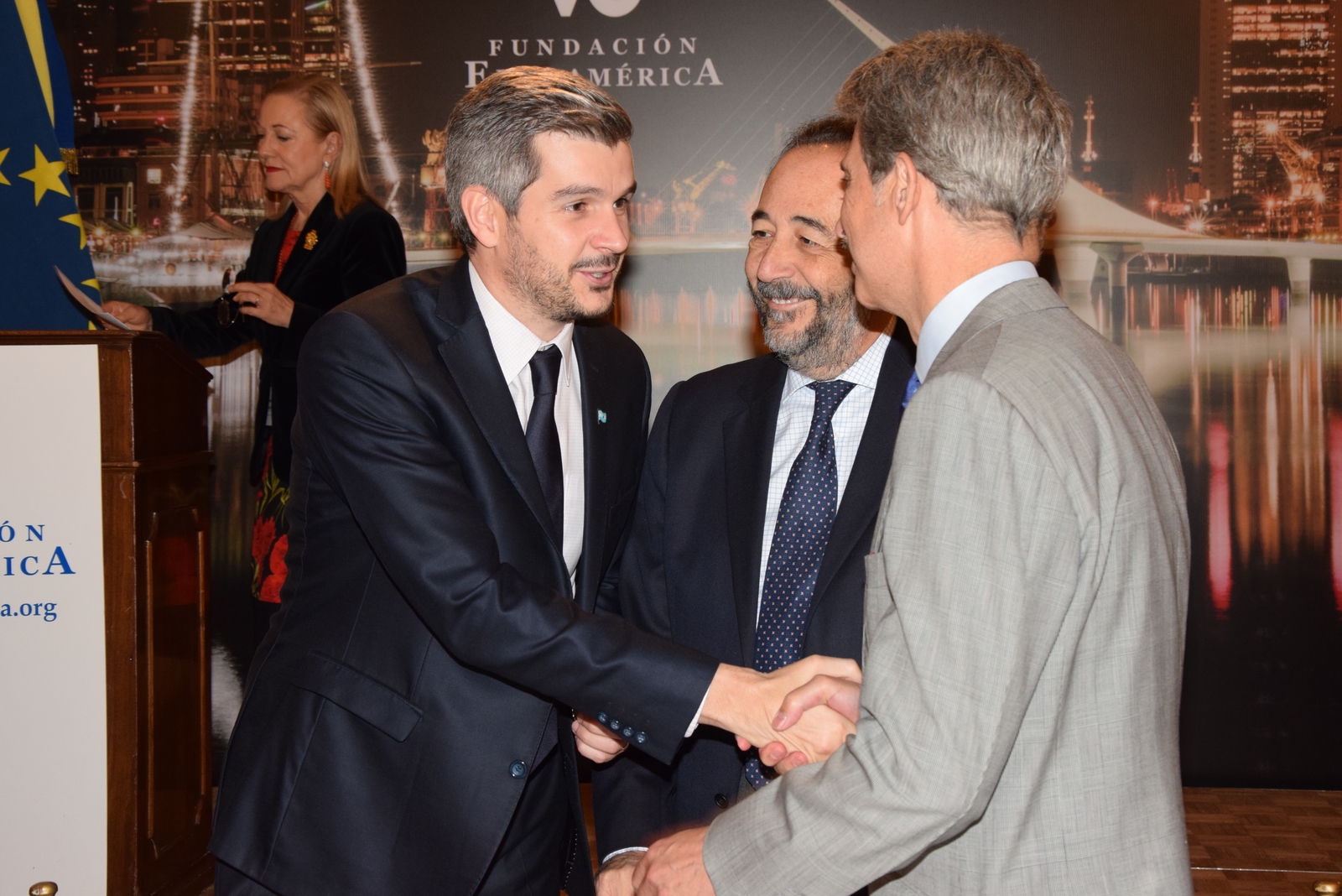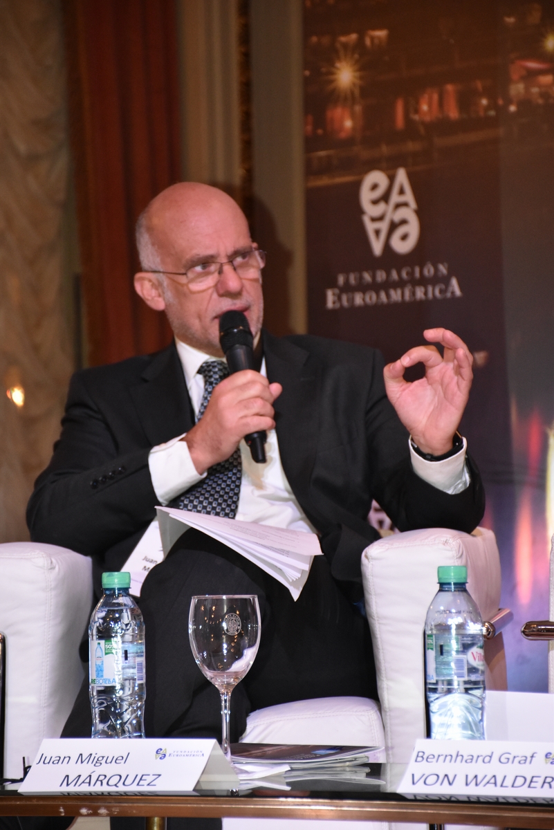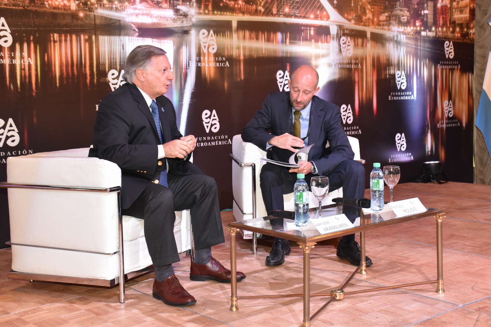 Hizo hincapié en las oportunidades que se presentan en todos los sectores, destacando el de infraestructuras básicas; el de energía con el desarrollo de la matriz energética- especialmente renovable y gasista -; el de minería con todo su potencial, citando específicamente el litio; y la capacidad de producción de alimentos. Resaltó la oportunidad de invertir en Argentina en el momento actual, destacando como socio estratégico a Europa, no sólo por la afinidad cultural e histórica, sino por su desarrollo en sectores como infraestructuras, energías o transportes, resaltando la importancia de la transferencia de tecnología. Como dato indicó que el 40% de los 60.000 millones de dólares anunciados de inversión en Argentina este último año pertenecen a compañías europeas.