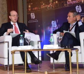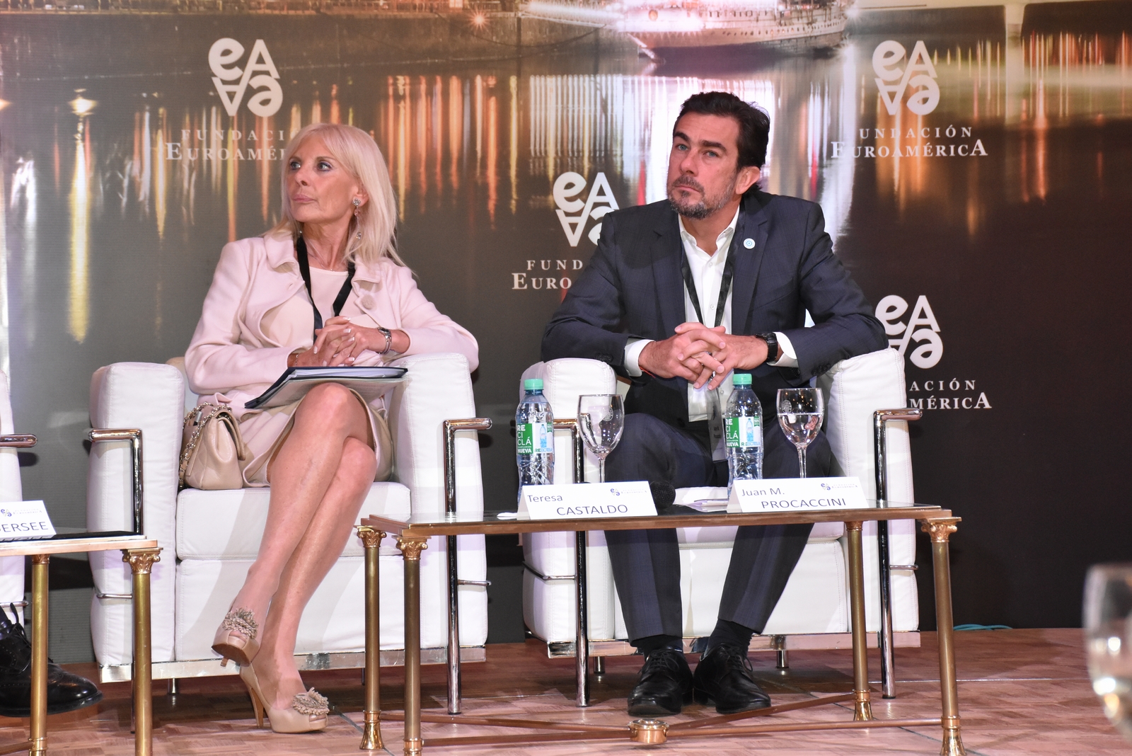Ángel Durández, moderador de la sesión, comenzó un turno de preguntas y comentarios, en las que el Sr Procaccini resaltó la buena disposición que se aprecia desde Europa respecto de La Argentina en esta nueva etapa. Resaltó igualmente la importancia de las pymes que definió como la locomotora de la economía. “Es esencial la colaboración de las pymes europeas y las argentinas para crear empleo y ganar competitividad” y resaltó la importancia de la formación y la transferencia de conocimiento. Ante la pregunta de ¿Cómo se puede trasformar la sociedad argentina, para evitar que vuelvan los populismos? Afirmó que hay un voto de confianza, pero también cierta incertidumbre. El Sr. Procaccini resaltó que no es sólo el Gobierno quien cree que hay que cambiar, es el pueblo argentino quien ya se ha dado cuenta de que el cambio de modelo es necesario. “El cambio cultural llevará tiempo pero se entenderá que para crecer y desarrollarse hay que evitar los subsidios, es necesaria la fortaleza institucional, y se está demostrando ya una fuerte madurez política en Argentina desde el momento en que la oposición se alinea con el gobierno en temas fundamentales aprobándose leyes muy relevantes en una situación de minorías en el Congreso”.