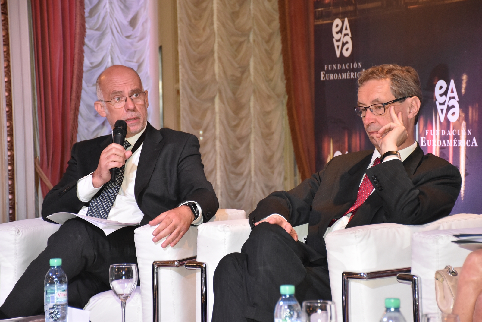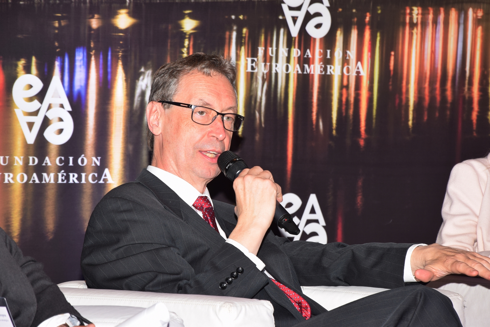 Adrianus KOETSENRUIJTER, Jefe de División de América del Sur, European External Action Service (EEAS), Unión Europea: Comenzó su intervención diciendo que el sentimiento actual, respecto de las relaciones de Europa con América Latina, es de optimismo. Se han reactivado las relaciones con visitas frecuentes que no se producían en años anteriores y con la reanudación de las conversaciones del Acuerdo UE-Mercosur que, habiendo comenzado en 1999, han estado paralizadas durante mucho tiempo. Continuo diciendo que Europa es un continente muy pequeño – Brasil es dos veces el territorio europeo-, no sólo a nivel geográfico, sino también desde el punto de vista demográfico, con una población envejecida que, además, ha perdido peso en la economía global. Abogó por repensar la estrategia global de Europa ante el mundo y por trabajar juntos, para ser fuertes. “La globalización hace que todo sea más cercano, los problemas de los demás son también nuestros problemas y nos enfrentamos a desafíos como los populismos, los refugiados, el terrorismo, el cambio climático o el orden global, todos ellos muy cercanos.”