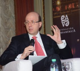Guillermo STANLEY, Miembro del Consejo de Administración de CIPPEC, Centro de Implementación de Políticas Públicas para la Equidad y el Crecimiento, Argentina: Comenzó la introducción a la sesión afirmando que “si miramos atrás desde la postguerra, las inversiones directas en Latinoamérica siempre han sido menores que en los países de la OCDE y en el sudeste asiático, y en concreto las inversiones en la Argentina han sido muy volátiles. Las cosas han cambiado, no sólo en las buenas prácticas legales, la formalización de empleo, preparación de la gente para acceder al empleo formal, etc.” Continuó indicando que “productividad y competitividad son dos de los términos que más se emplean en estos momentos desde el gobierno, que está tomando medidas para reactivar las inversiones en sectores estratégicos, mirando el largo plazo, que redunden en beneficio de los consumidores. Se empiezan, a reactivar sectores como el energético, el de construcción y obra pública o el automotriz, entre otros”.