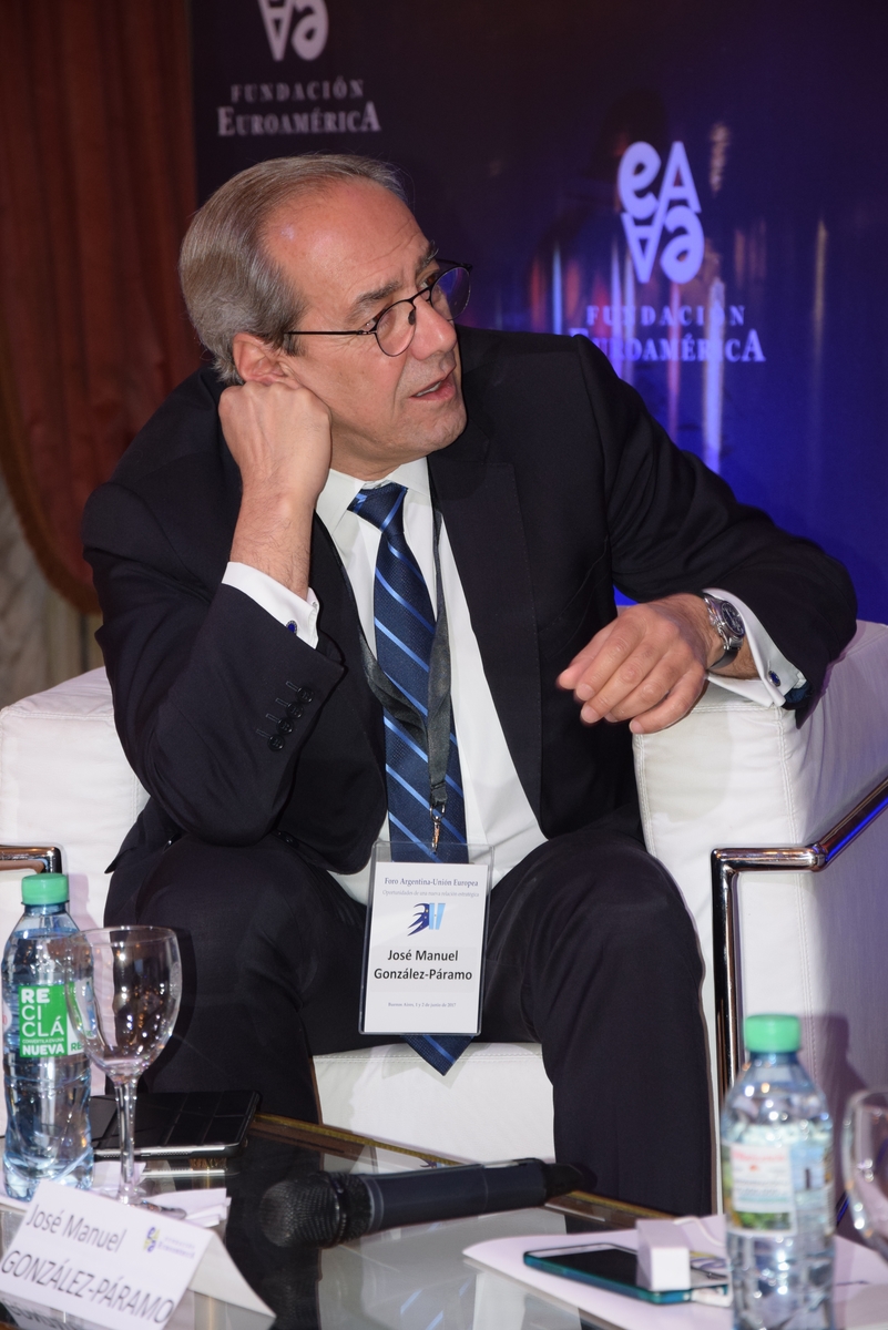 José Ignacio SALAFRANCA, miembro del Parlamento Europeo. Ponente del Acuerdo UE-Mercosur. Patrono de la Fundación Euroamérica: comenzó su ponencia explicando los motivos que le llevaron a volver en el mes de enero de este 2017 a su escaño en el Parlamento Europeo, abandonando la Delegación de la UE en Argentina, país en el que se ha sentido muy a gusto y en el que tenía una ambiciosa agenda por delante durante los tres años siguientes.