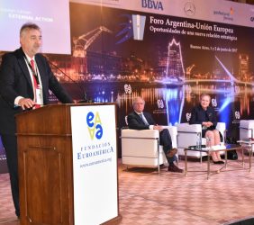 Acabó su intervención hablando del momento excepcional en la relación de Europa y Latinoamérica. El Brexit introduce importantísimos incentivos para América Latina, así como la política de EEUU. La unión Europea tiene que saber aprovechar esta oportunidad y Argentina tiene que ser el motor de ese acercamiento entre estas dos regiones, que deben actuar más conjuntamente.
