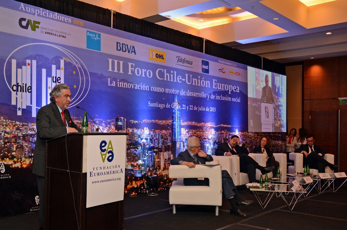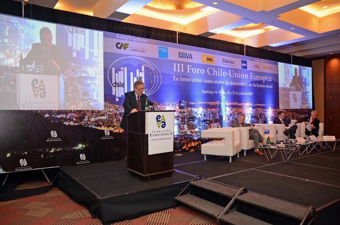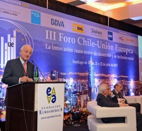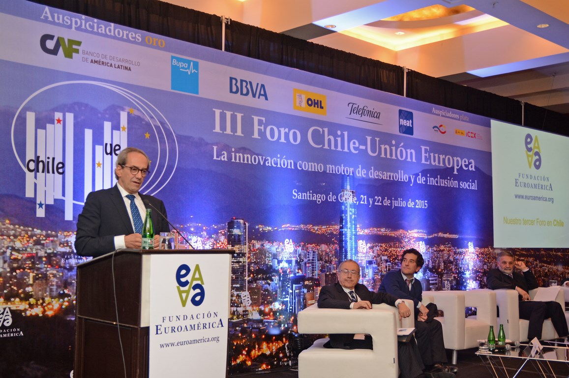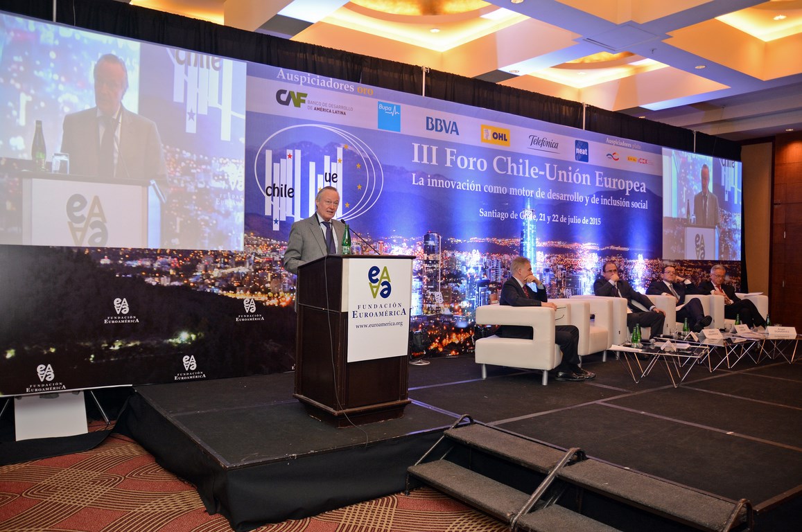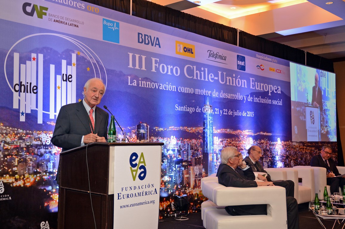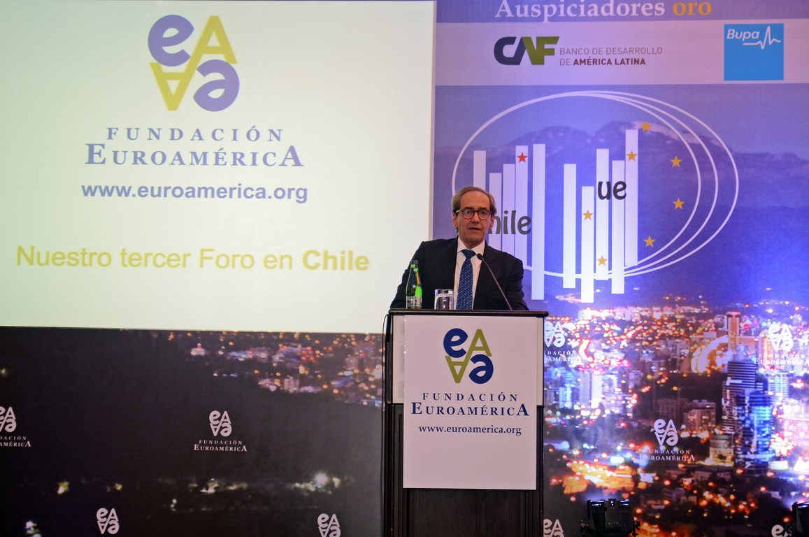 El momento actual en el que el nuevo gobierno presidido por Michelle Bachelet está acometiendo transformaciones estructurales ambiciosas cuyo objetivo es alcanzar un crecimiento, no sólo sostenido sino inclusivo, hace que este Foro Chile-Unión Europea, tercero que la Fundación Euroamérica organiza en Santiago de Chile, sea un marco perfecto de debate, análisis y reflexión, establecido al más alto nivel, que suponga un intercambio de experiencias, diálogo y cooperación entre dos ámbitos políticos y económicos que comparten amplias miras de mutuo entendimiento.