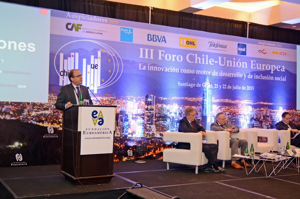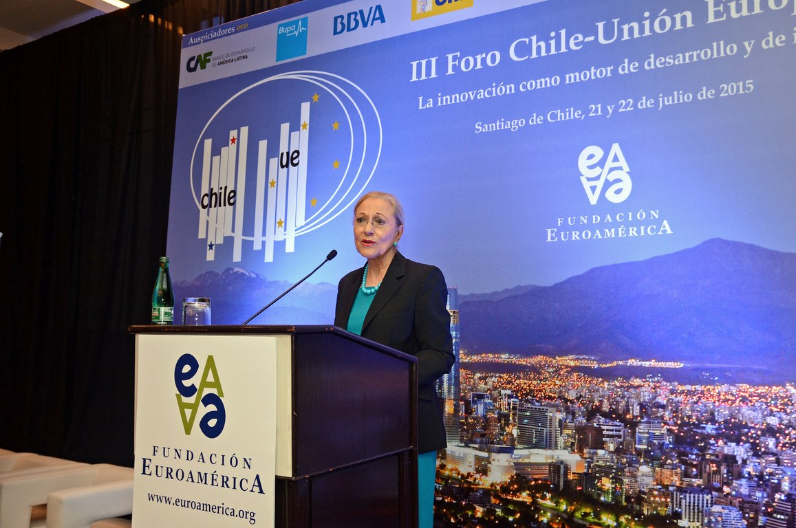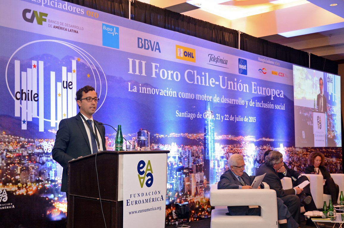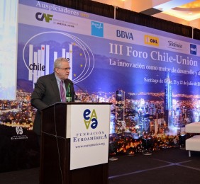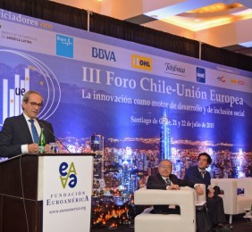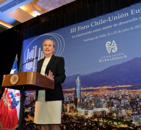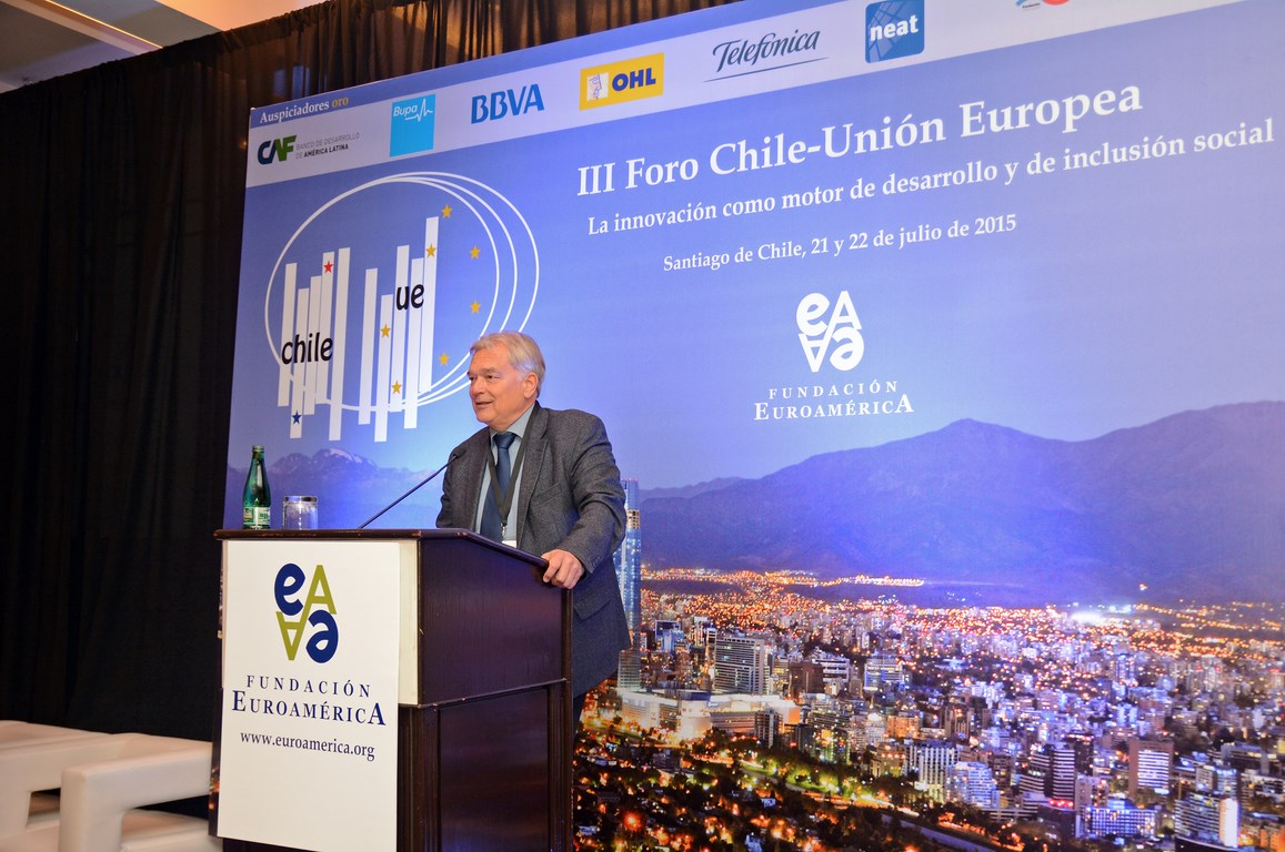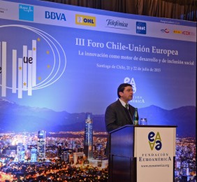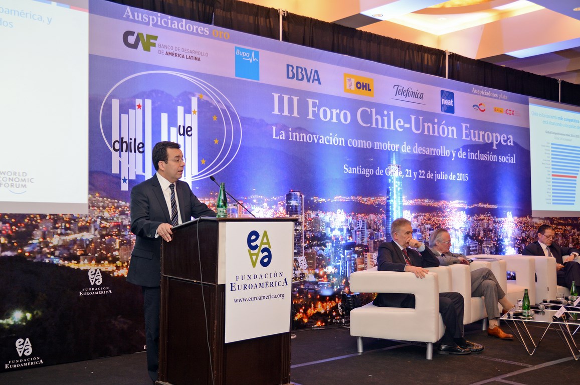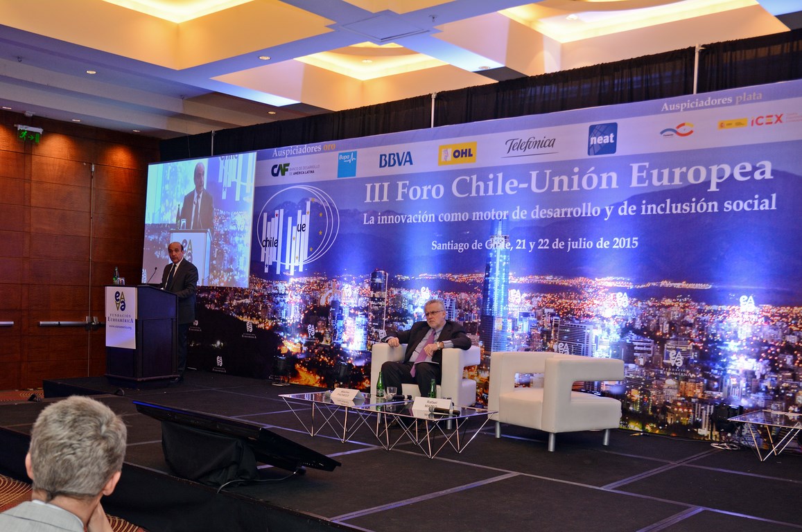 El momento actual en el que el nuevo gobierno presidido por Michelle Bachelet está acometiendo transformaciones estructurales ambiciosas cuyo objetivo es alcanzar un crecimiento, no sólo sostenido sino inclusivo, hace que este Foro Chile-Unión Europea, tercero que la Fundación Euroamérica organiza en Santiago de Chile, sea un marco perfecto de debate, análisis y reflexión, establecido al más alto nivel, que suponga un intercambio de experiencias, diálogo y cooperación entre dos ámbitos políticos y económicos que comparten amplias miras de mutuo entendimiento.