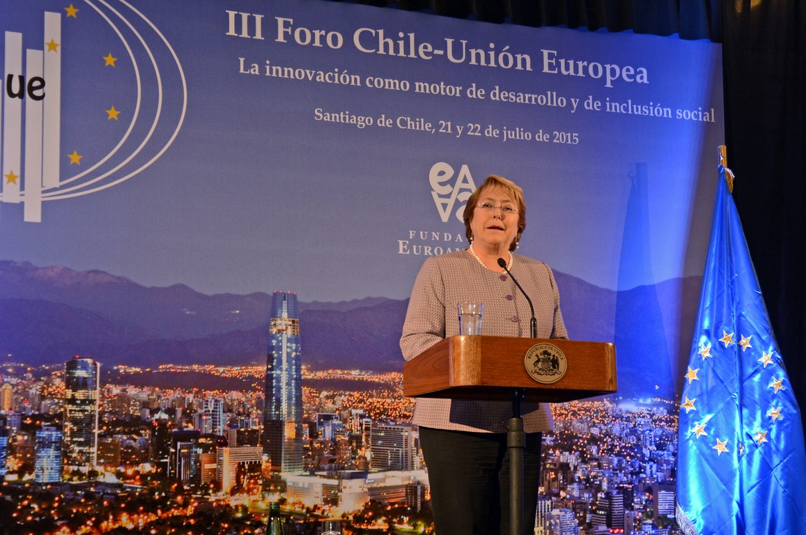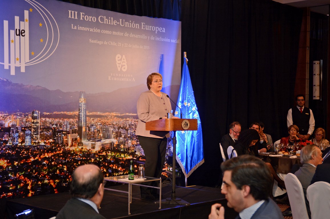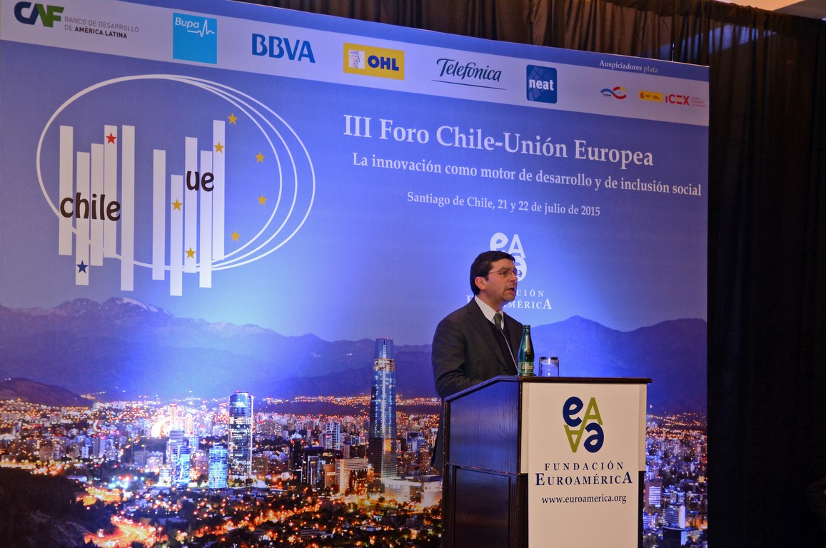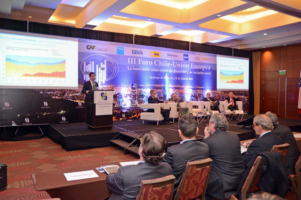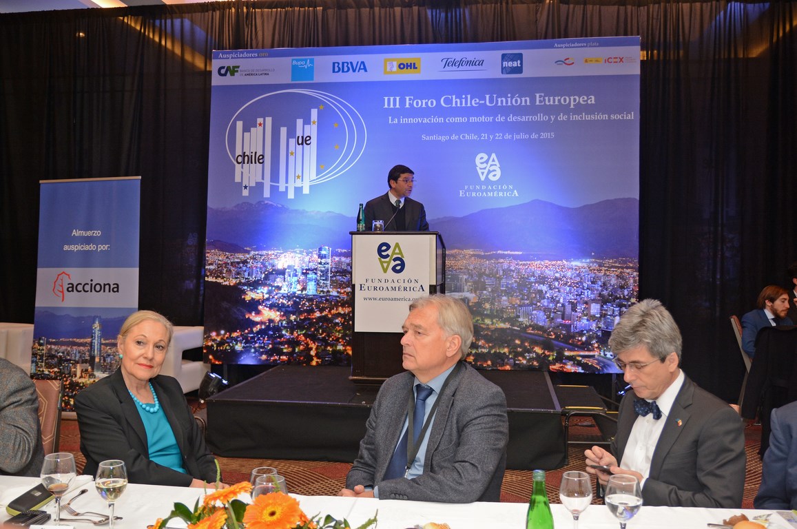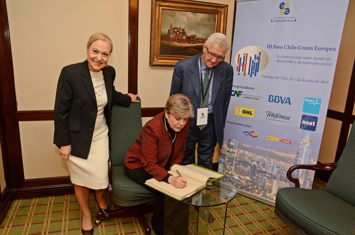 El momento actual en el que el nuevo gobierno presidido por Michelle Bachelet está acometiendo transformaciones estructurales ambiciosas cuyo objetivo es alcanzar un crecimiento, no sólo sostenido sino inclusivo, hace que este Foro Chile-Unión Europea, tercero que la Fundación Euroamérica organiza en Santiago de Chile, sea un marco perfecto de debate, análisis y reflexión, establecido al más alto nivel, que suponga un intercambio de experiencias, diálogo y cooperación entre dos ámbitos políticos y económicos que comparten amplias miras de mutuo entendimiento.