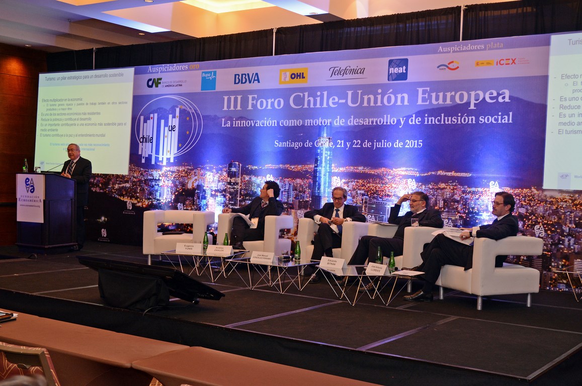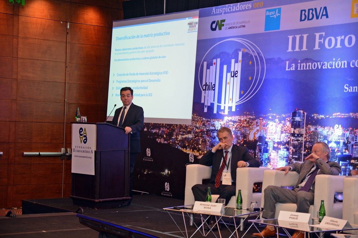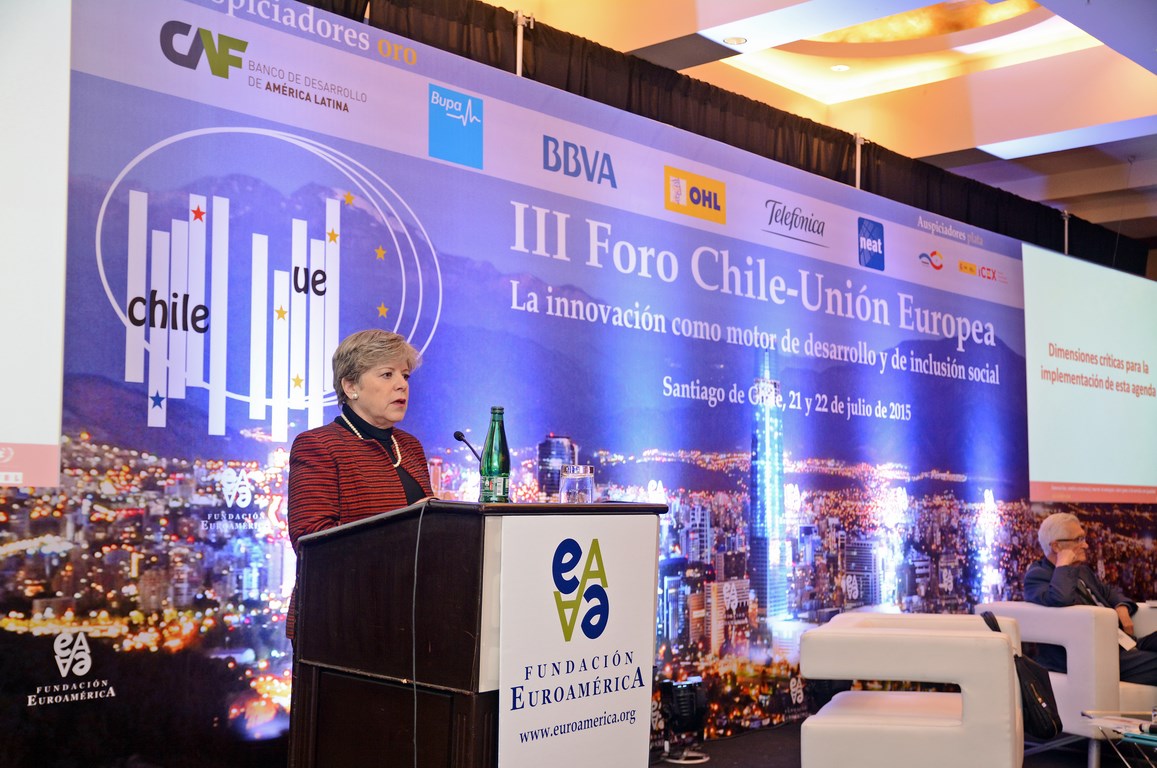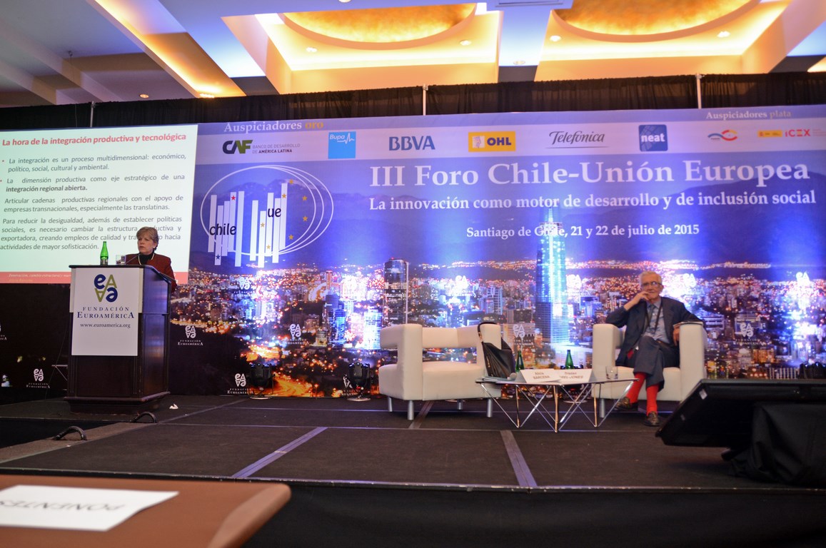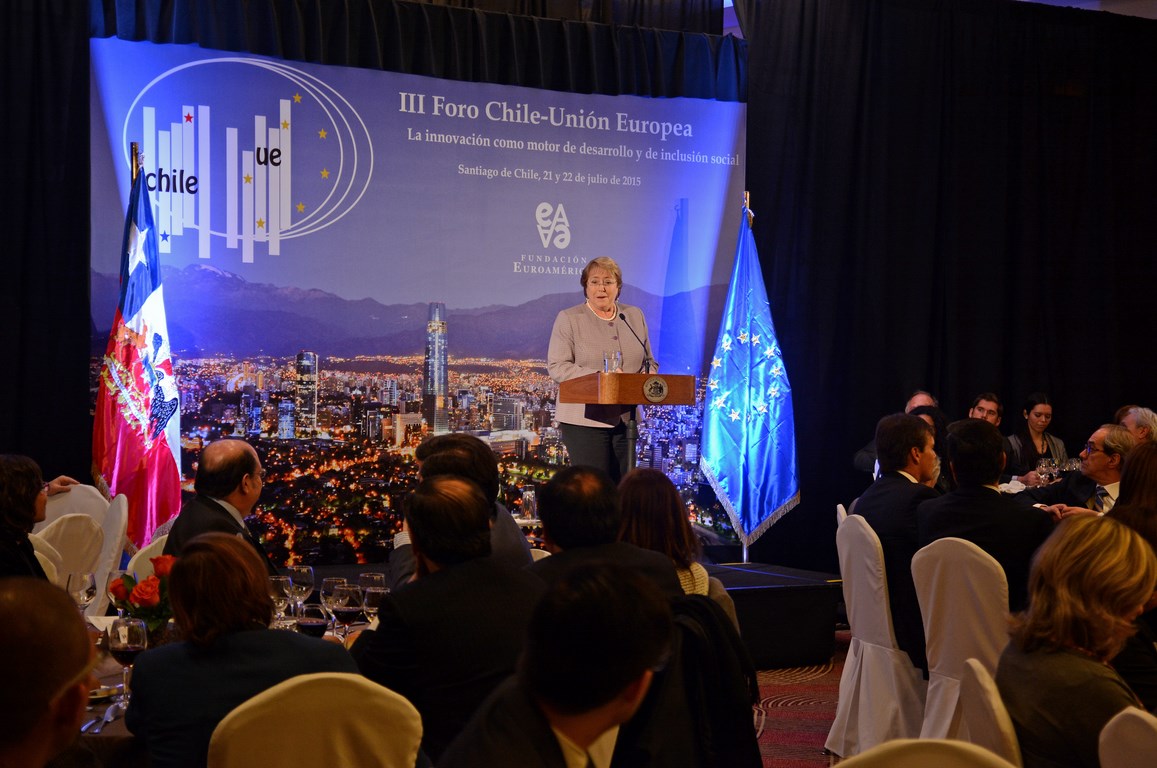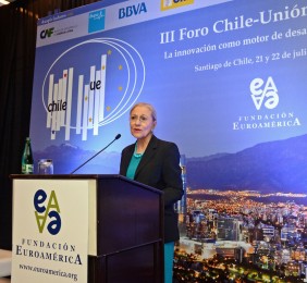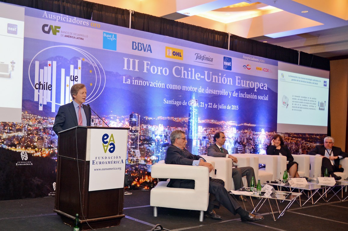 El momento actual en el que el nuevo gobierno presidido por Michelle Bachelet está acometiendo transformaciones estructurales ambiciosas cuyo objetivo es alcanzar un crecimiento, no sólo sostenido sino inclusivo, hace que este Foro Chile-Unión Europea, tercero que la Fundación Euroamérica organiza en Santiago de Chile, sea un marco perfecto de debate, análisis y reflexión, establecido al más alto nivel, que suponga un intercambio de experiencias, diálogo y cooperación entre dos ámbitos políticos y económicos que comparten amplias miras de mutuo entendimiento.