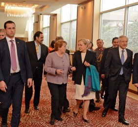 Dª. Benita Ferrero-Waldner habló de la Fundación Euroámerica y de la labor que hace. Tuvo palabras de agradecimiento para todos los ponentes y asistentes al foro, y dio paso al discurso de la Presidenta Michelle Bachelet.