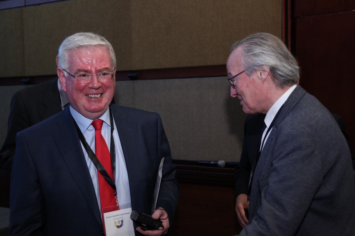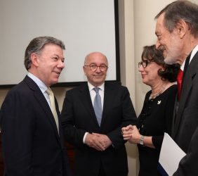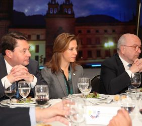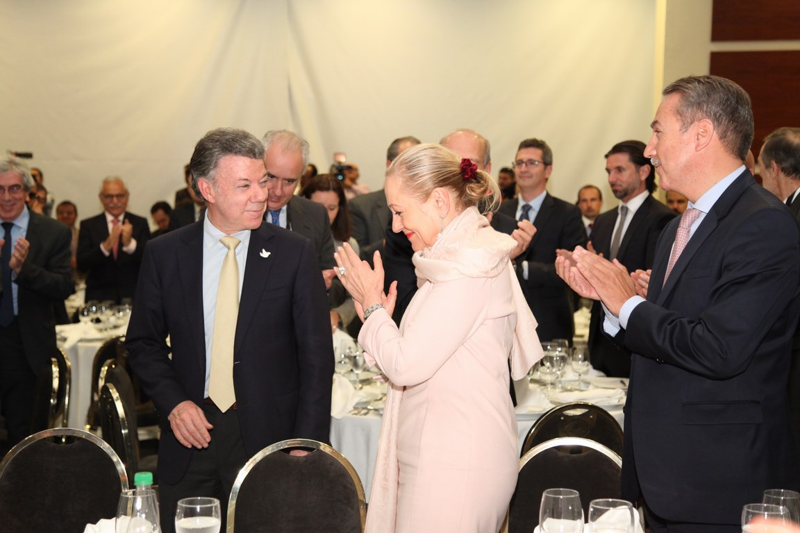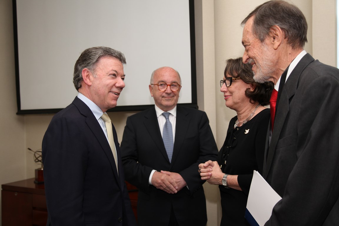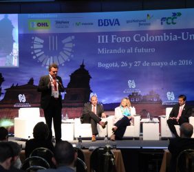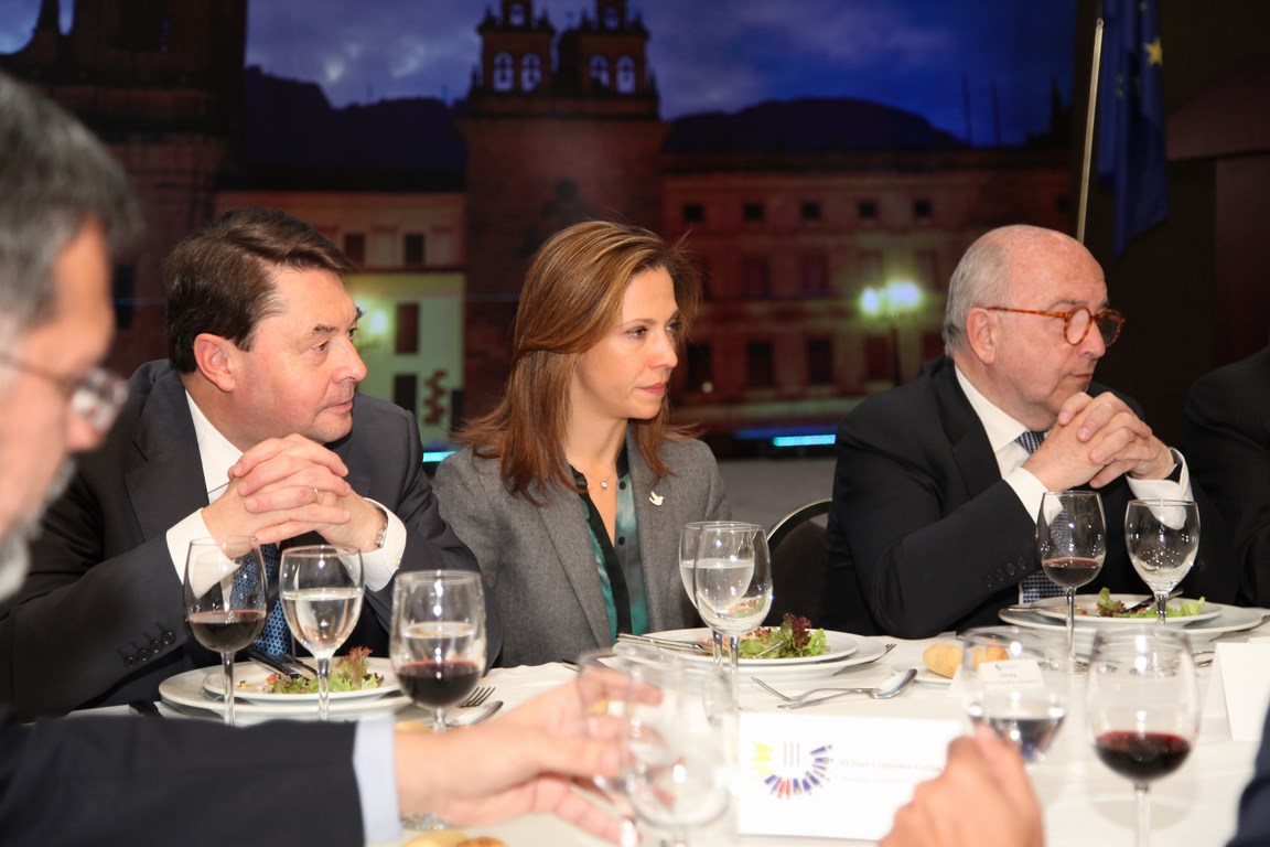 Recordó la necesidad de Colombia de contar con recursos para financiar la agenda de políticas sociales que se ha construido a lo largo de la negociación, así como los costes propios de la desmovilización y la reparación de las víctimas. Junto con los recursos locales, los recursos internacionales van a jugar un papel determinante. Reiteró el atractivo de Colombia en materia económica, conjugando riqueza natural con estabilidad macroeconómica, estabilidad política, seguridad jurídica y capital humano, además de su pertenencia a la Alianza del Pacífico que es otro elemento a favor. Lo menciono por su extraordinaria relevancia y repercusión, ya que los países que la componen están logrando avances de integración que en el contexto latinoamericano no se han conseguido en 50 años.