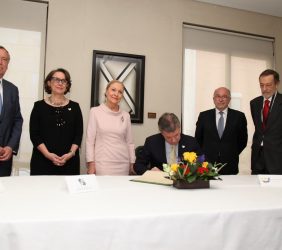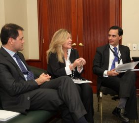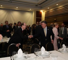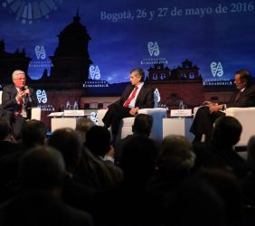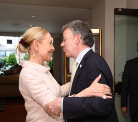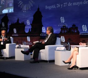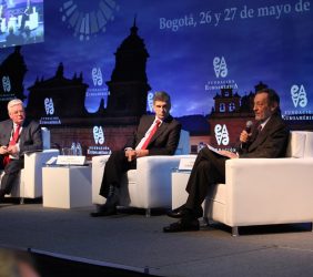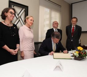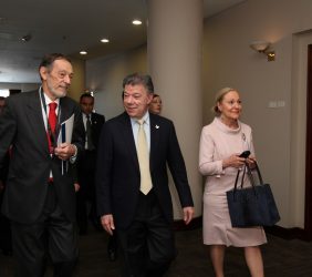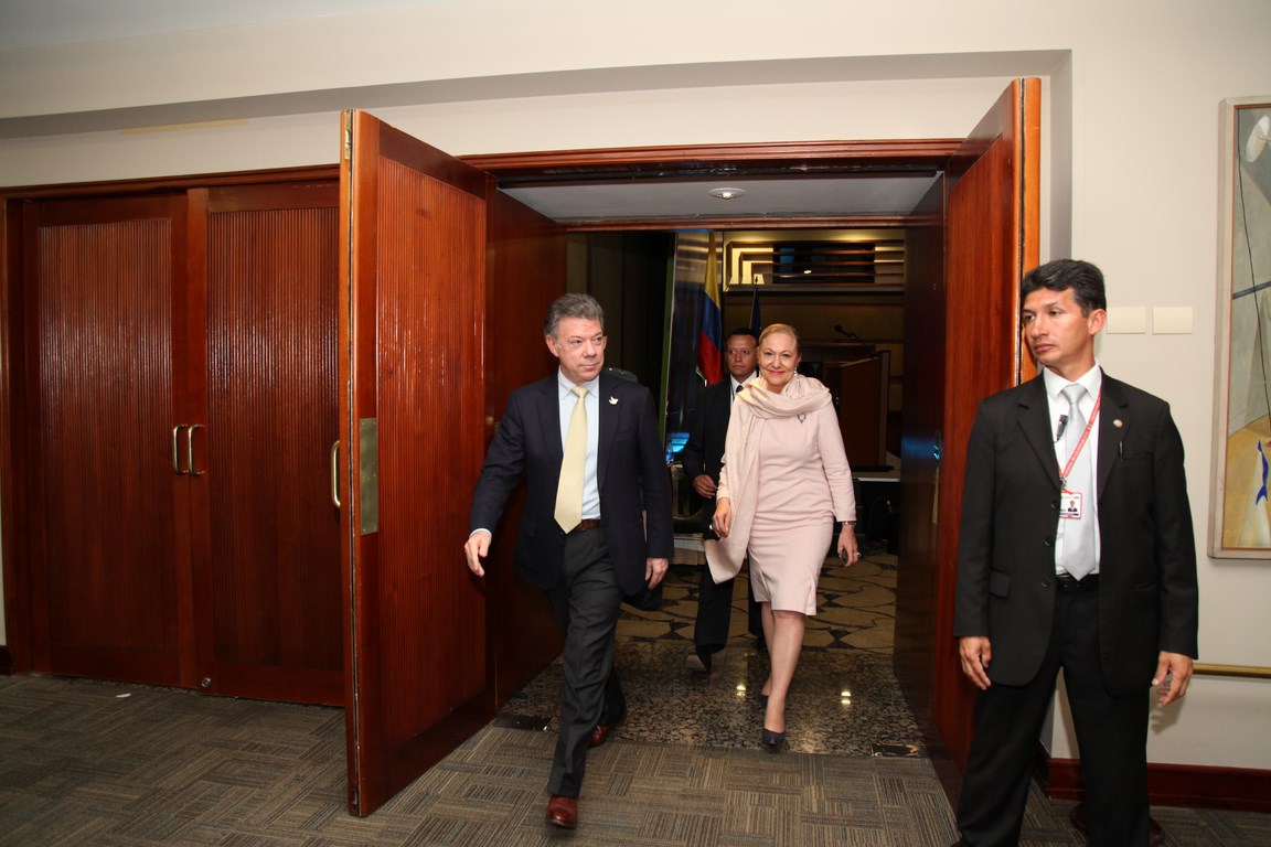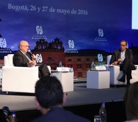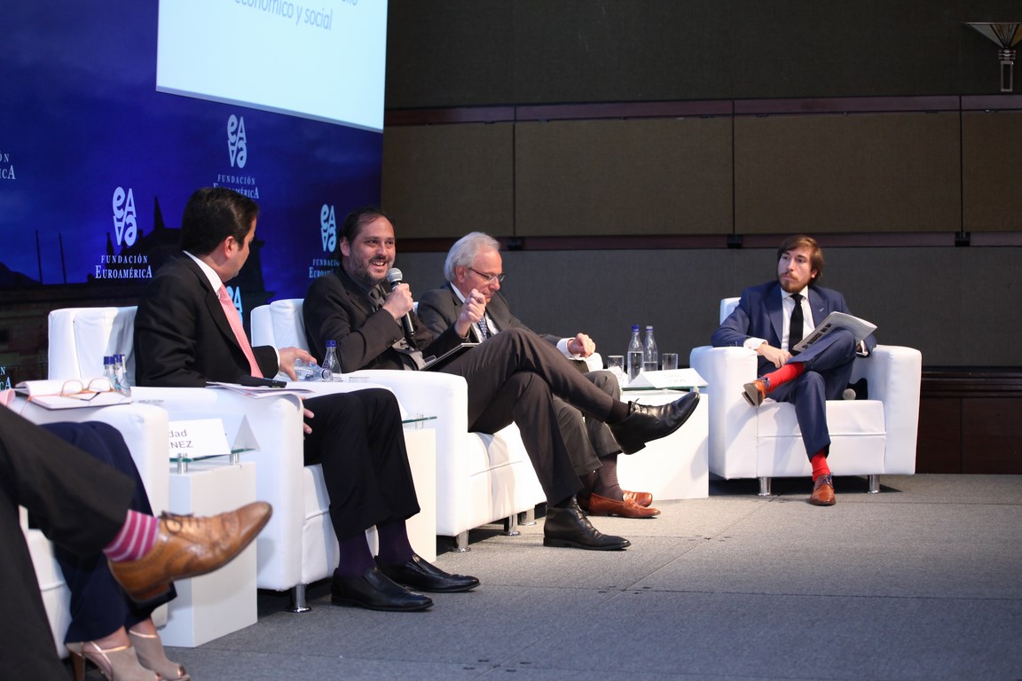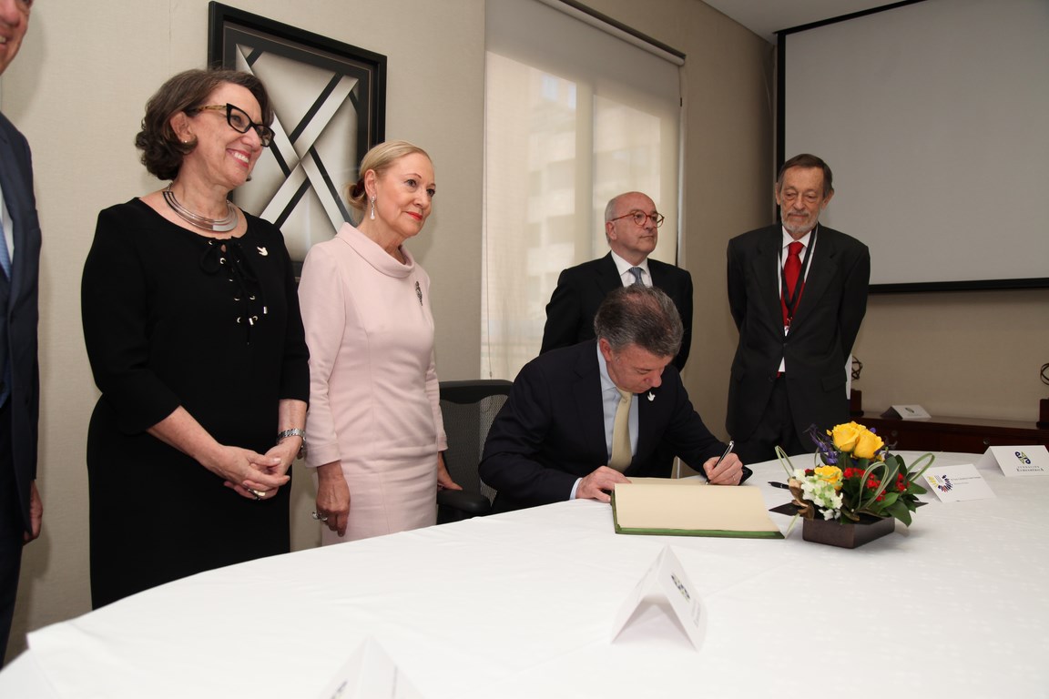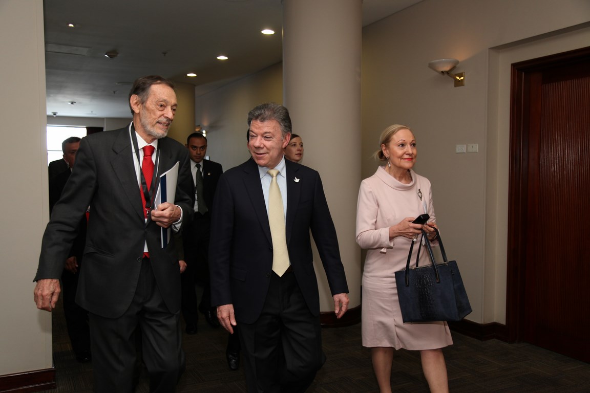 Recordó la necesidad de Colombia de contar con recursos para financiar la agenda de políticas sociales que se ha construido a lo largo de la negociación, así como los costes propios de la desmovilización y la reparación de las víctimas. Junto con los recursos locales, los recursos internacionales van a jugar un papel determinante. Reiteró el atractivo de Colombia en materia económica, conjugando riqueza natural con estabilidad macroeconómica, estabilidad política, seguridad jurídica y capital humano, además de su pertenencia a la Alianza del Pacífico que es otro elemento a favor. Lo menciono por su extraordinaria relevancia y repercusión, ya que los países que la componen están logrando avances de integración que en el contexto latinoamericano no se han conseguido en 50 años.