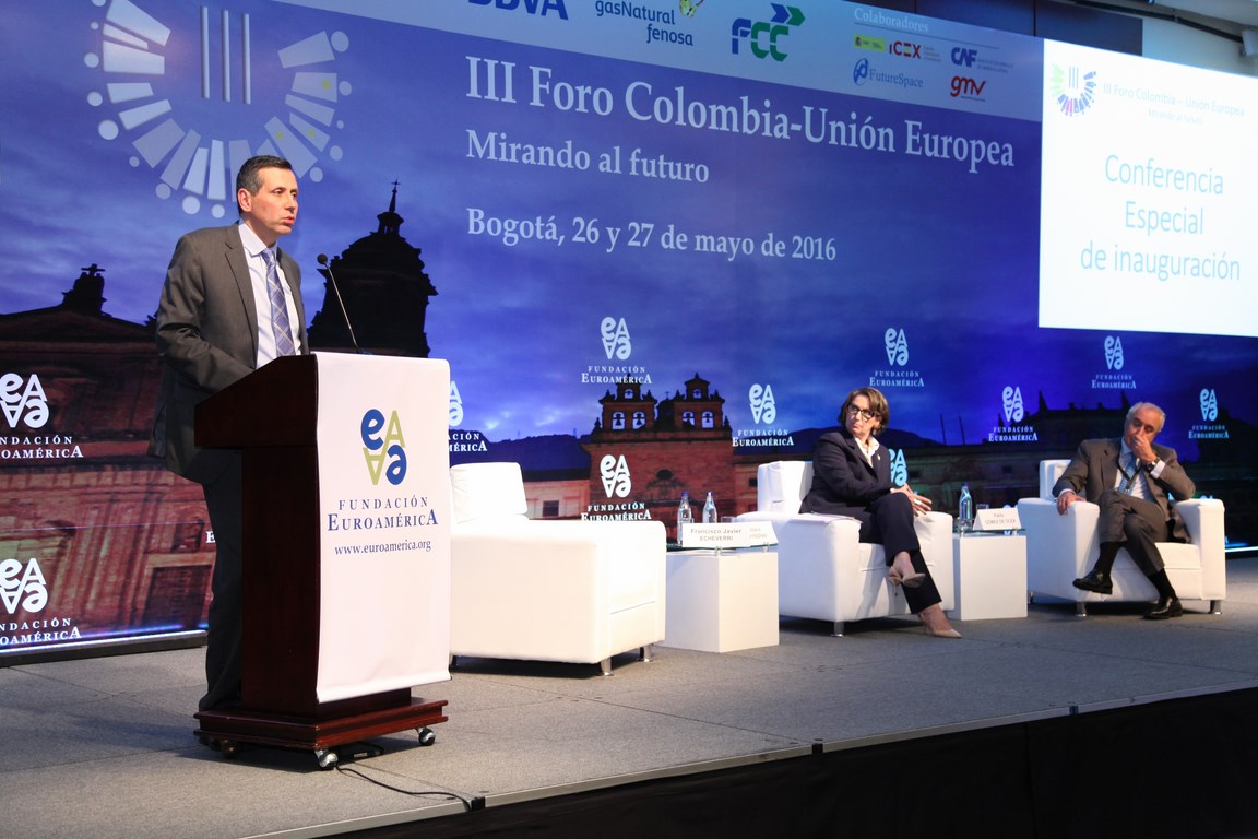 El momento actual en el que el nuevo gobierno, presidido por Juan Manuel Santos, ha diseñado un ambicioso Plan de Gobierno con el objetivo de alcanzar un crecimiento, no sólo sostenido sino inclusivo, hace que este Foro Colombia-Unión Europea, tercero que la Fundación Euroamérica organiza en este país, sea un marco perfecto de debate, análisis y reflexión, establecido al más alto nivel, que suponga un intercambio de experiencias, diálogo y cooperación entre dos ámbitos políticos y económicos que comparten amplias miras de mutuo entendimiento.