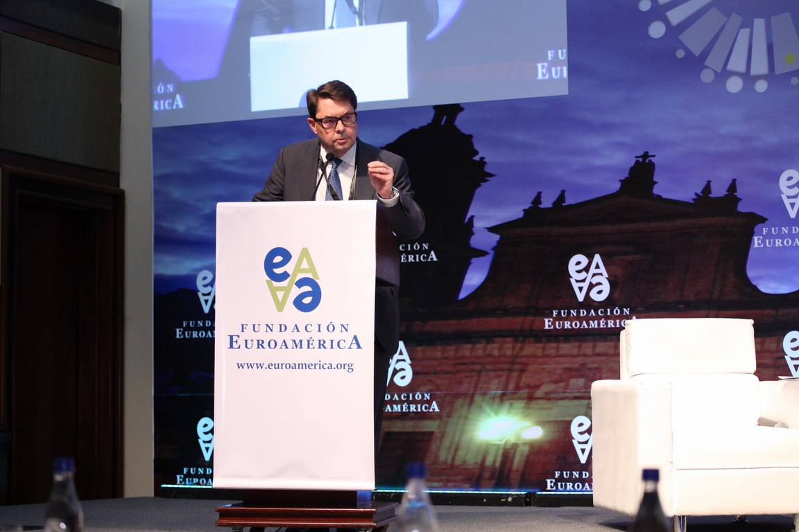 Comenzó reiterando su convencimiento de que las relaciones entre Europa y América Latina, compartiendo una serie de valores, tienen sentido en la medida en que sea un vínculo entre iguales y profundizar en nuestros lazos de unión, puede reportar importantes beneficios para ambos. Se trata de una alianza estratégica que representa un compromiso birregional que es necesario mantener y fomentar por parte de los Gobiernos, involucrando en todo momento al sector privado, que es el motor del desarrollo económico mundial.