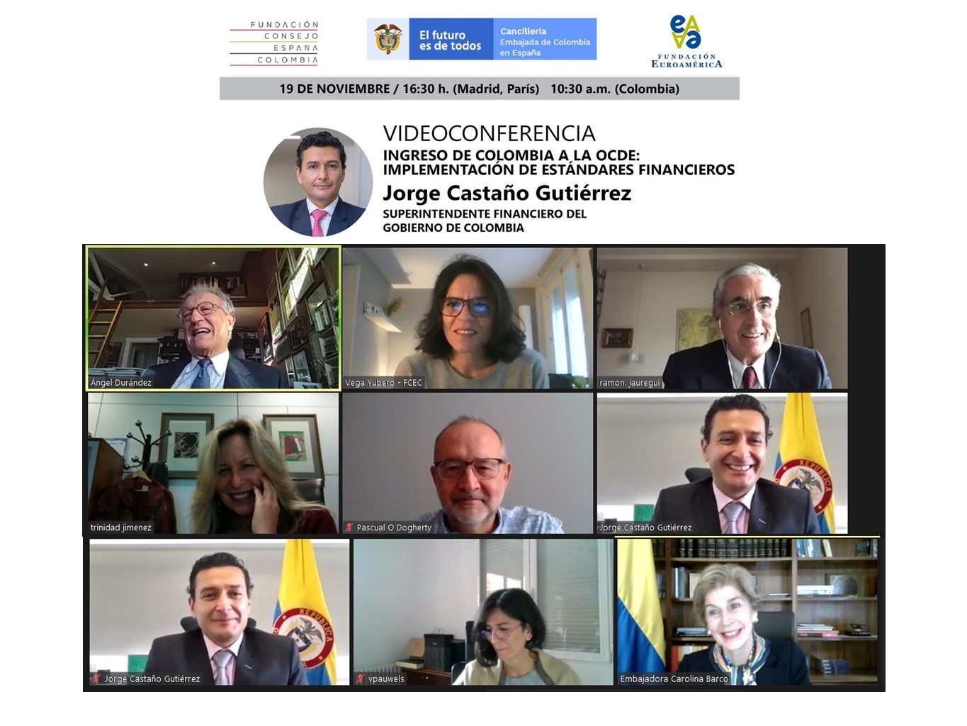 La Fundacion Euroamerica, junto a la Fundación Consejo España- Colombia y la Embajada de Colombia en España, organiza este encuentro cuyo invitado de honor es el Superintendente financiero del Gobierno de Colombia, Jorge Castaño para reflexionar sobre la implementación de estándares financieros consecuencia de la incorporación de Colombia a la OCDE.
