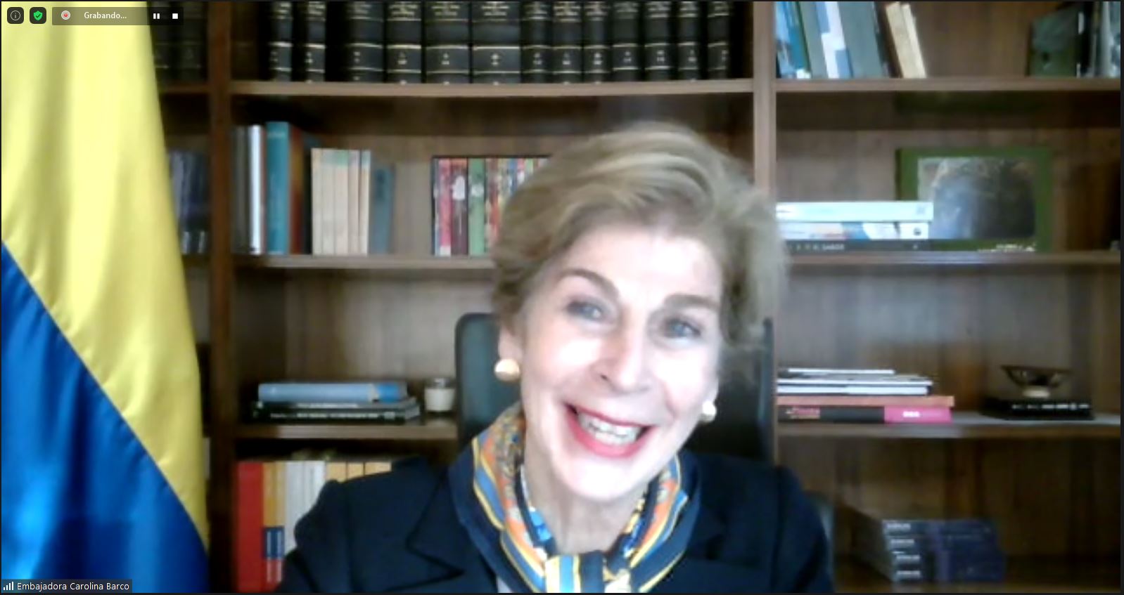Finaliza el encuentro con las palabras de la Embajadora Carolina Barco quien agradece su intervención a todos los participantes despidiéndose de su responsabilidad como embajadora con afectuosas palabras.