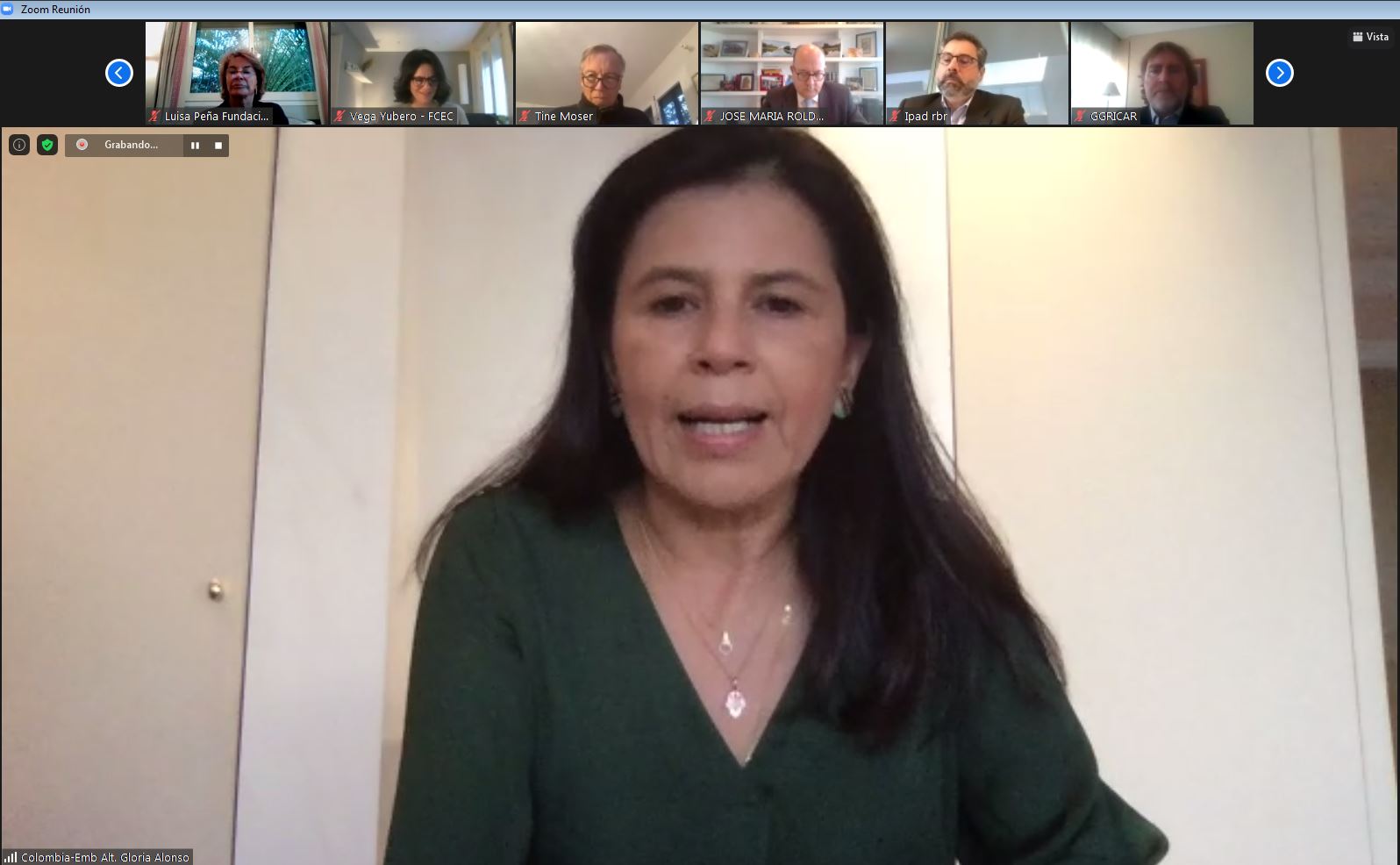 Ángel Durández da la palabra a la Embajadora de Colombia ante el reino de España, Carolina Barco, quien en su breve intervención recuerda el gran esfuerzo que ha supuesto para Colombia su incorporación a la OCDE pero también que es un gran reto acabar de cumplir con todos los compromisos y seguir mejorando. Resalta la importancia de la inversión española Colombia, con más de 570 empresas que han servido además para conocer las buenas prácticas y para ver cómo se está gestionando de una manera más moderna.