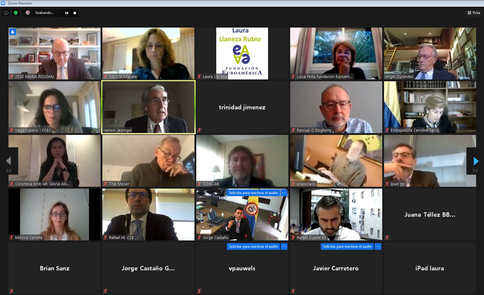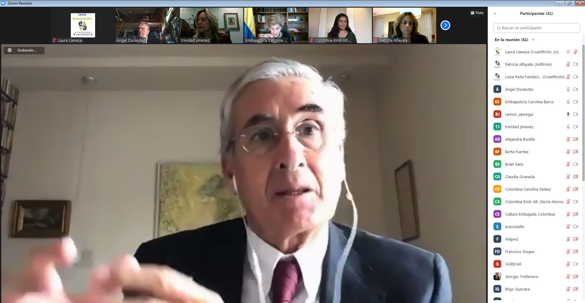 Ramón Jaúregui, presidente de la Fundación Euroamérica, inicia sus palabras resaltando que la pertenencia a la OCDE supone el cumplimiento de una normativa muy exigente en el ámbito interior, pero además implica la adhesión de sus estados miembros a una serie de convenios internacionales que comprometen al país que se adhiere a la OCDE, en este caso a Colombia, porque armoniza su regulación en el entorno del mundo desarrollado, desde el punto de vista económico, acredita al país ante mercados, inversores y también ante los países hacia los que exporta sus productos. “ La seguridad jurídica que configura el marco OCDE le da una gran solvencia al país y además le obliga a una larga marcha de perfeccionamiento en su normativa interior para gradualmente ir alcanzando mejores posiciones en lo que llamaríamos el perfeccionamiento del ordenamiento regulatorio de interno del país”.