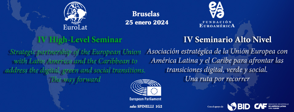 In this context, on January 25th, the Euroamerica Foundation together with the EuroLat Assembly is organising a new edition of the annual high-level seminar at the European Parliament headquarters in Brussels. In the afternoon session titled ‘Strategic partnership of the European Union with Latin America and the Caribbean to address the digital, green and social transitions. The way forward.’ experts from European institutions, from Latin America and the Caribbean, and from companies from both sides of the Atlantic will be analysing the relations between these two regions.