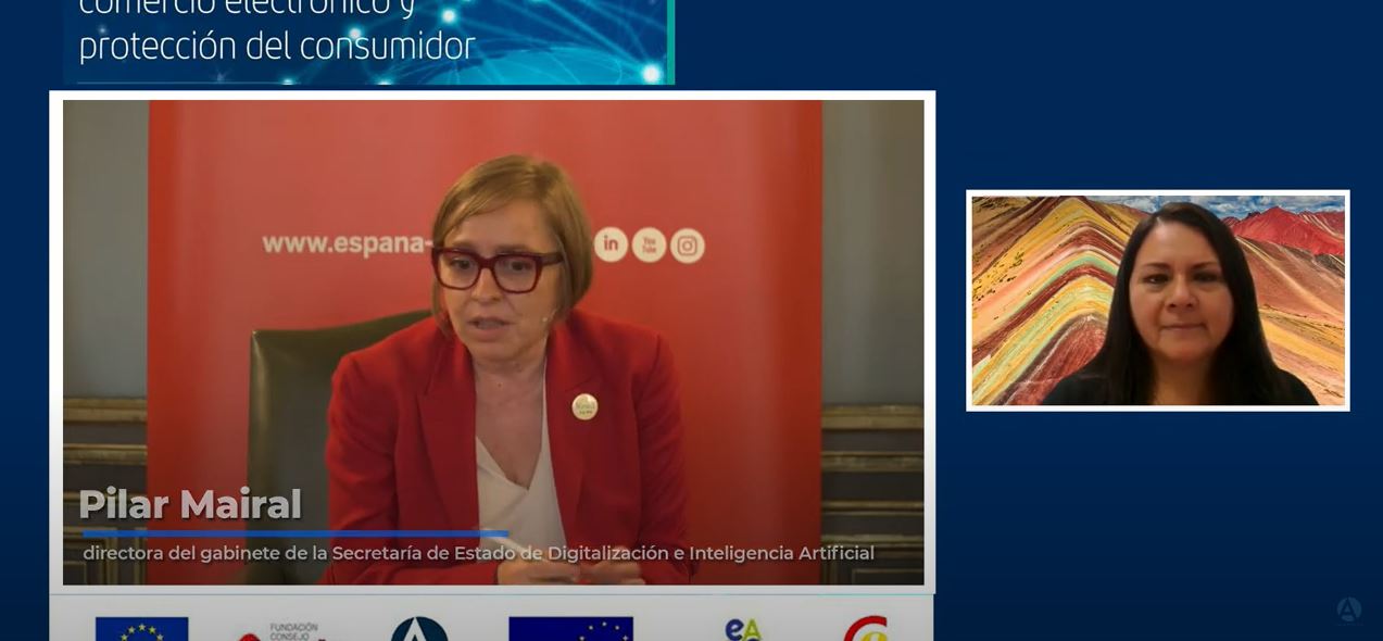 El acto contó con las ponencias de Alexandre Mateus, Jefe de la Sección Económica y Comercial de la Delegación de la Unión Europea en Perú y Conrado Castillo, uno de los autores del estudio «Asesoramiento para la facilitación de adopción de normas y estándares digitales europeos como elemento facilitador del comercio y de la inversión en Perú», así como con la participación de un panel de expertos formado por Marushka Chocobar, secretaria de Gobierno y Transformación Digital de la Presidencia del Consejo de Ministros de Perú; Pilar Mairal, directora del Gabinete de la Secretaría de Estado de Digitalización e Inteligencia Artificial; José Juan Haro, director de Negocio Mayorista y Asuntos Públicos de Telefónica Hispam, y Alfonso Tena, director de Relaciones Institucionales de Indra. Desde el comienzo de la pandemia, el comercio electrónico ha crecido exponencialmente en Perú. Actualmente el país andino se encuentra entre los cinco primeros países latinoamericanos en comercio electrónico: 14 millones de peruanos –alrededor del 42% de la población total– y en torno a 300.000 comercios (especialmente MIPYMES) hacen uso regular del comercio electrónico. La cualificación y formación digital de las MIPYMES y la confianza digital, garantizada por la protección del consumidor y los derechos digitales, serán claves para acelerar la transición digital en Perú.