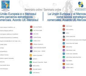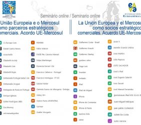 Ramón Jáuregui, Presidente de la Fundación Euroamérica: Concluyó el seminario con varias ideas: “El establishment económico y político europeo y el de Sudamérica y de Mercosur, en particular, tenemos mucho interés en que esto prospere. Como bien se ha dicho, 20 años de negociación y toda la dimensión política, económica y comercial que se derivan de este importantísimo acuerdo nos impulsan a favorecer la ratificación del Acuerdo”. “Es destacable el pronunciamiento tan rotundo del Ministro de Exteriores portugués de que en el primer semestre del año que viene – cuando se produzcan la traducción legal, los servicios legales y sus funciones y desde luego el debate político en el Parlamento – el Acuerdo pueda ser aprobado”.