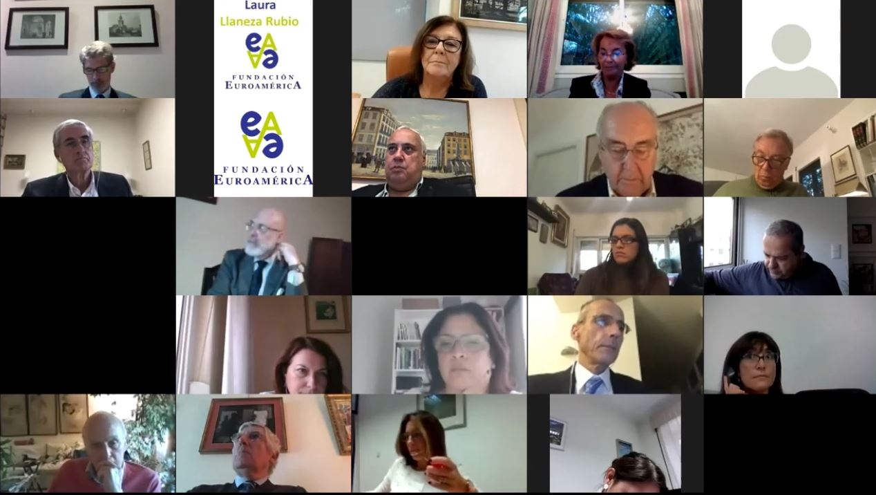 José Ignacio Salafranca, Vicepresidente de la Fundación Euroamérica: inicia la mesa redonda con los tres representantes de las Instituciones europeas recordando que “en vísperas de negociación comercial, concluida en junio de 2019, el Presidente de Francia y otros Primeros Ministros expresaron su preocupación a la Comisión por algunos aspectos de la negociación; otros primeros ministros como la Canciller General alemana, el Presidente del gobierno español, el Primer Ministro de Suecia, de los Países Bajos y de otros Estados miembros insistieron en la necesidad de poder concluir a término este acuerdo”.