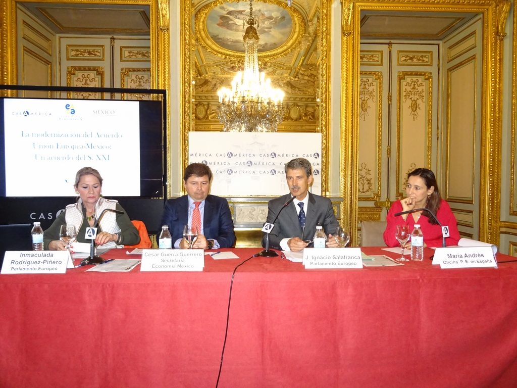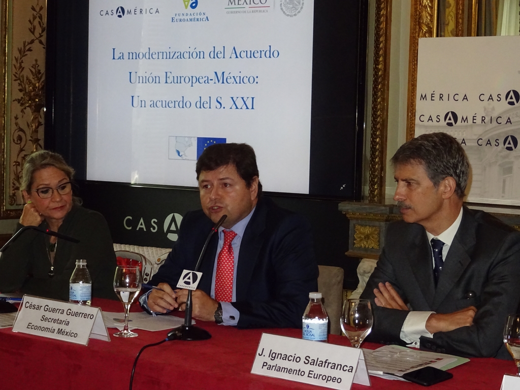 Inicia su intervención César Guerra, Representante de la Secretaría de Economía de la Embajada de México en la UE, considerando que la negociación de la modernización del Acuerdo era impostergable ya que había muchos productos fuera del Acuerdo, sobre todo en el sector agrícola. Después de 10 rondas de negociación y con ciertas limitaciones para productos sensibles a proteger, se ha llegado a un acuerdo.