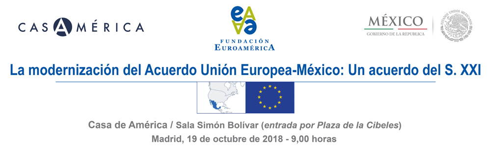 Todo ello será objeto de exposición y debate por parte de personalidades de ambos lados del Acuerdo que han intervenido a lo largo del proceso de negociación, en el seminario que la Fundación Euroamérica celebrará el próximo 19 de octubre en Casa de América con el apoyo de la Embajada de México en España. Igualmente contaremos con representantes de instituciones y de empresas mexicanas y europeas que nos hablarán de las repercusiones del acuerdo desde el punto de vista empresarial.