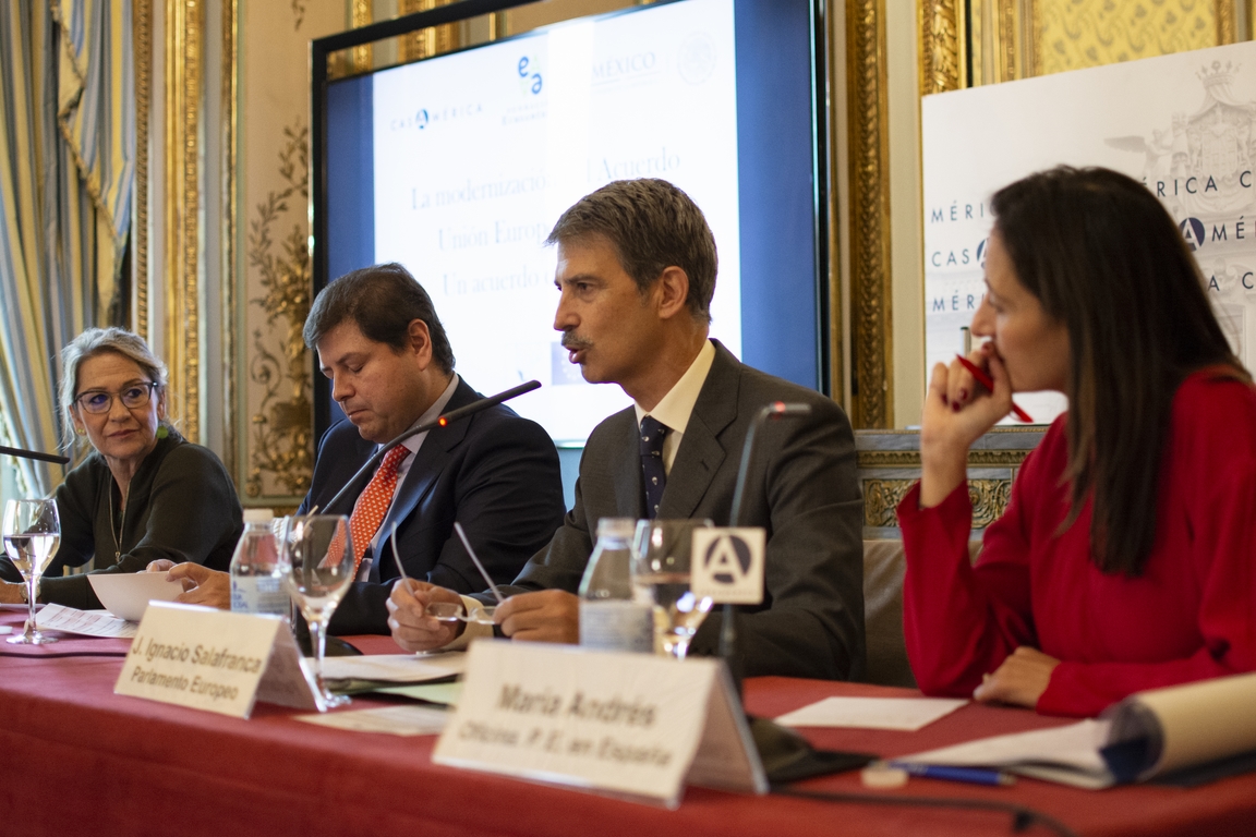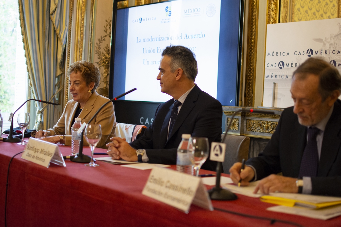 En sus palabras, Santiago Miralles, Director General de Casa de América, destaca la importancia de este encuentro ya que la modernización del Acuerdo UE-México, con una relación privilegiada, era un asunto urgente para ambos y resalta que ante el próximo cambio de gobierno en México, las últimas negociaciones han contado con la colaboración unánime de ambos equipos.