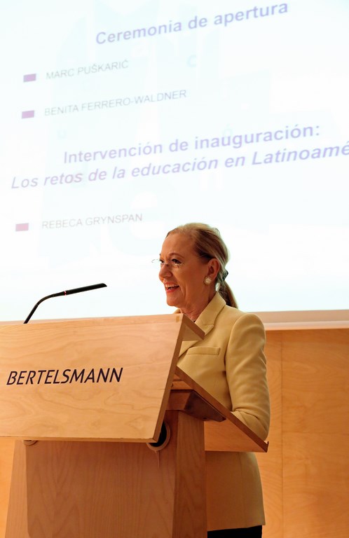 “La educación es un motor del crecimiento económico, pero también de inclusión social y de reducción de la desigualdad. Es fundamental entenderla como un vector de cohesión social”, resaltó Benita Ferrero-Waldner, presidenta de la Fundación Euroamérica en sus palabras de inauguración.
