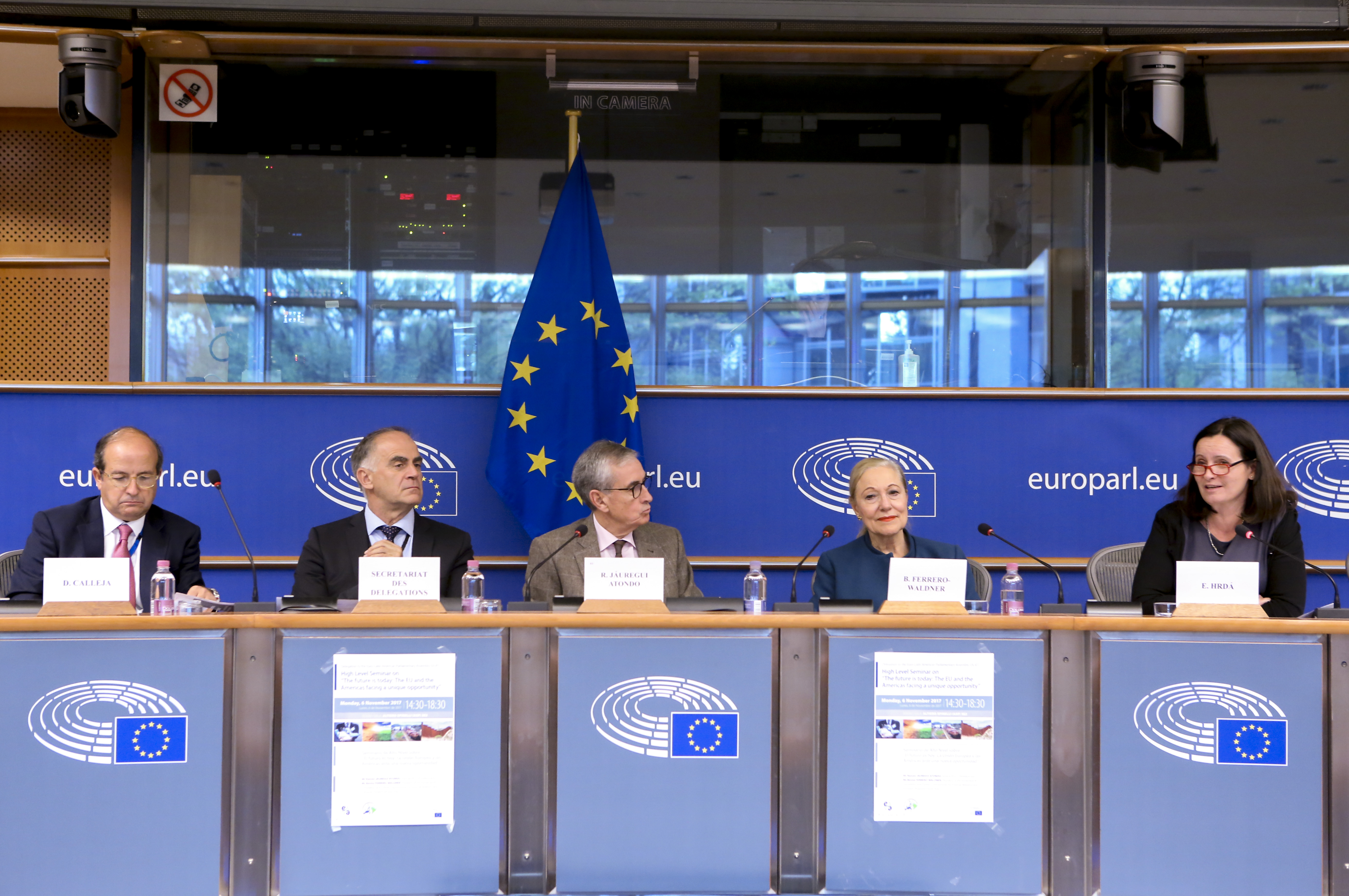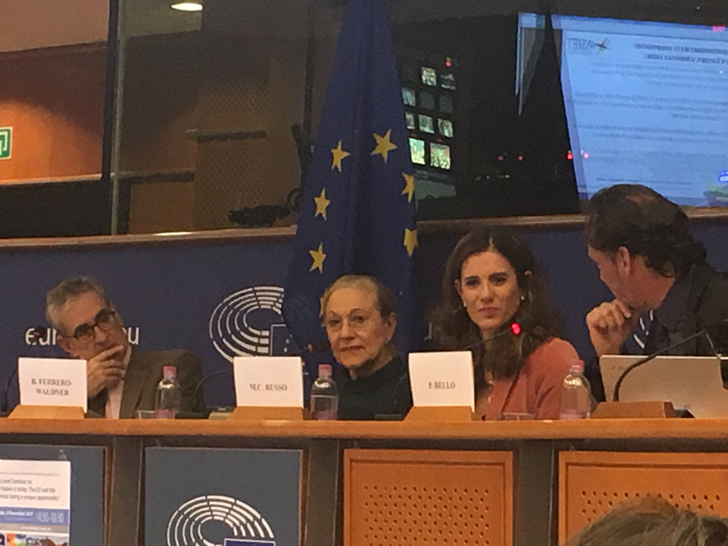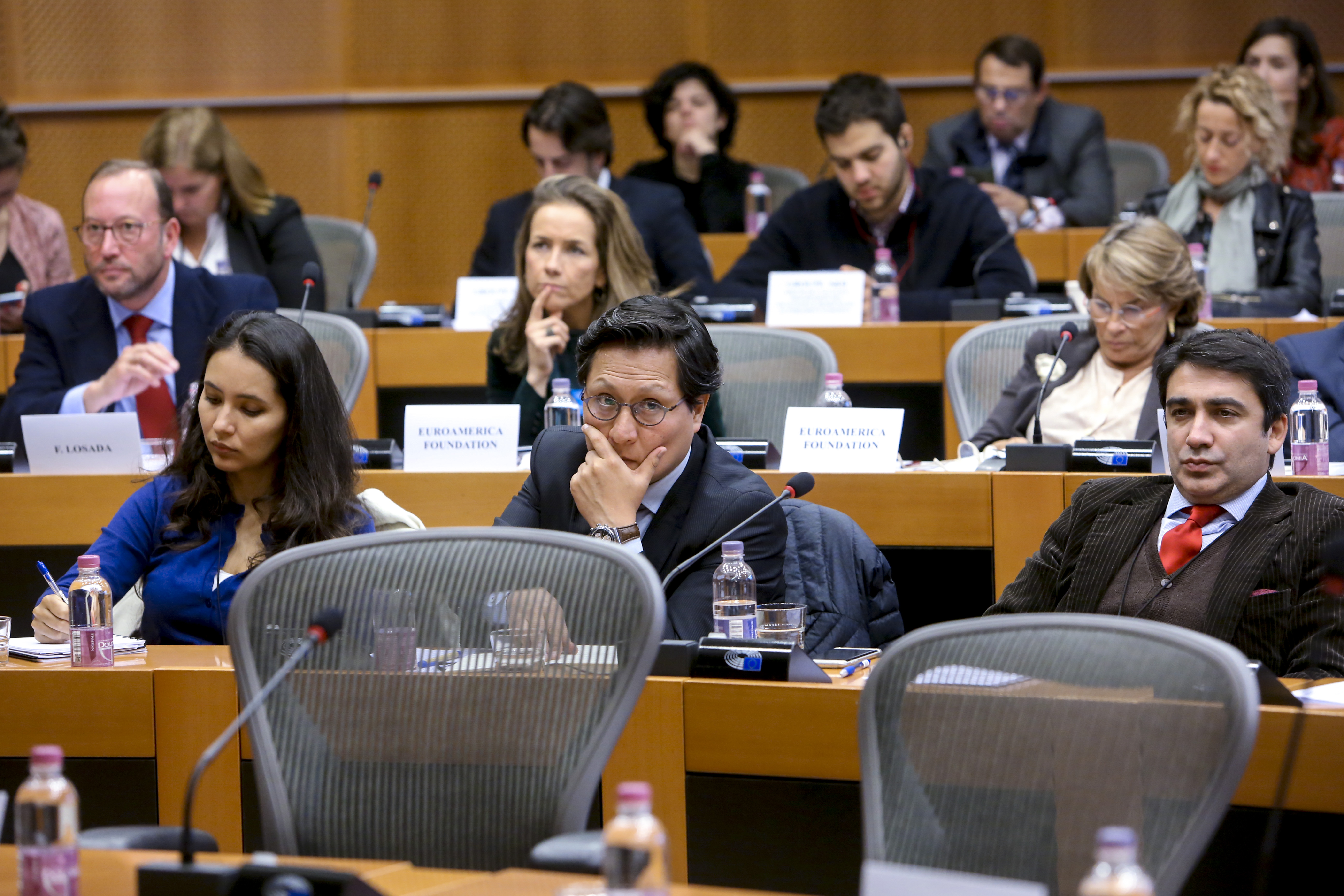 El Eurodiputado Ramón Jáuregui, Presidente de la Delegación del Parlamento Europeo en la Asamblea EuroLat, comenzó sus palabras de inauguración destacando que el PE acoge este seminario, que quiere ser una oportunidad para que analicemos en profundidad el marco de relaciones entre Europa y América Latina y poner de nuevo sobre la mesa la importancia de esta relación”. Destacó “tres grandes acontecimientos que han marcado las relaciones entre las dos regiones: la entrada de España y de Portugal en la UE en 1986; la llegada allí de grandes empresas europeas que entraron en los grandes servicios públicos, y que han aportado grandes avances al espacio público y privado de los países latinoamericanos y la asociación birregional entre las dos regiones culminada con la creación de la Asamblea EuroLat; Concluyó diciendo que “América Latina es probablemente el mejor amigo de Europa desde la perspectiva geopolítica, y de intereses y valores comunes.” Para la ExComisaria europea y Presidenta de la Fundación Euroamérica, Benita Ferrero-Waldner: “En la Fundación Euroamérica tenemos claro que profundizar en los lazos de unión entre Europa y América Latina sólo puede reportar importantes beneficios para ambos.” “Después de los grandes sobresaltos en el entorno internacional, tras el triunfo del Brexit y la elección de D. Trump en EEUU creemos que es un buen momento para repasar el estado de la relación eurolatinoamericana ya que los elementos de incertidumbre que introducen influyen, sin lugar a dudas, en las relaciones transatlánticas. Pero frente a la emergencia de China, con todo su potencial comercial y de inversiones financieras, la relación UE-AL se apoya en sólidos nexos históricos, culturales, de respeto a los derechos humanos y a las leyes internacionales en la defensa de intereses mutuos, de los valores compartidos y también en una importante evolución de sus relaciones económicas y comerciales.”