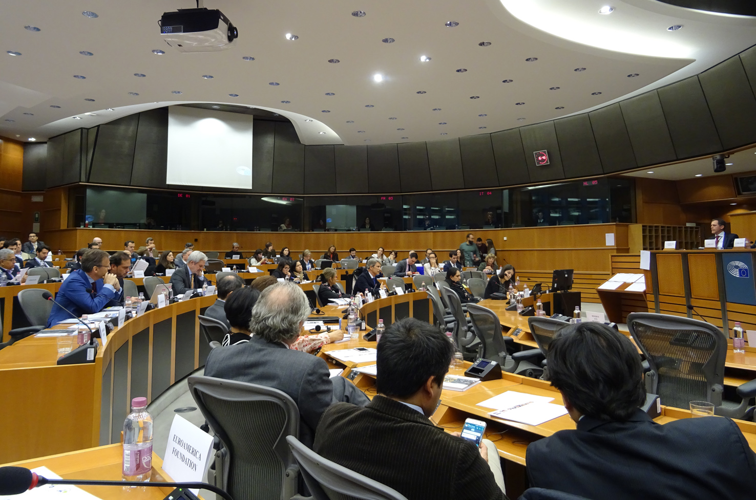 Para Arnaldo Abruzzini, de Eurochambres, “si todos estamos de acuerdo en la importancia de la relación UE-AL, por qué no avanzamos suficientemente y de una forma más beneficiosa para ambos continentes?” Apuntó cuatro temas principales que deberán tenerse en cuenta por parte de los líderes políticos de ambas regiones: contar con un marco que facilite las relaciones comerciales; facilitar el clima empresarial, el entorno de negocios; trabajar en la capacitación y la mejora de las aptitudes para aumentar la productividad; y una fuerte apuesta por la innovación. A continuación intervino Luisa Santos, de Business Europe quien indicó que “para las empresas el tiempo es un factor de competitividad, el mundo está abierto a los intercambios comerciales, la cadena de suministro global está integrada”. “Cuando hablamos de profundizar y mejorar las relaciones de la Unión Europea y Latinoamérica, estamos hablando de oportunidades de negocio, de comercio, de inversiones, pero también hablamos de valores y de normas, y de oportunidad de cooperar mejor a nivel multilateral, en la OMC y en otras instancias multilaterales donde, entre nuestras dos regiones, podemos hacer que cambien las cosas si conseguimos un acuerdo acerca de cuáles son las normas que creemos que se apliquen en el futuro en toda una serie de ámbitos. Por último intervino Carlos Rodríguez Cocina, de Telefónica resaltando la “importancia de la liberalización comercial y la apertura comercial frente a las amenazas de proteccionismo” y poniendo como ejemplo de ello a Telefónica que “a finales de los ochenta era una empresa española con 12 millones de clientes y gracias a los procesos de apertura hacia Latinoamérica se ha convertido en una empresa con 350 millones de clientes y presencia en catorce países de la región. Y esto no se produjo en relación con unos acuerdos comerciales bilaterales existentes en la época pero sí con una mentalidad que existía en torno a la creación de la OMC y de políticas de apertura, que favorecieron este proceso de crecimiento que hace que por ejemplo Telefónica no se pueda entender hoy sin Latinoamérica.”. Para finalizar el seminario, el eurodiputado Ramón Jáuregui dijo unas palabras de clausura en nombre del Presidente del PE, Antonio Tajani, destacando la pertinencia de celebración del encuentro en el que “hemos tenido a personas de extraordinario interés, así como una participación extraordinariamente alta y muy cualitativa que le ha dado la brillantez que deseábamos”. Destacó el deseo por parte de la UE de celebrarse lo antes posible la Tercera Cumbre UE-Celac, preparada para haberse celebrado este año en El Salvador, “como culminación de muchos de estos trabajos en el ámbito de la investigación y el desarrollo en particular en todo lo que tiene que ver con el conocimiento.”