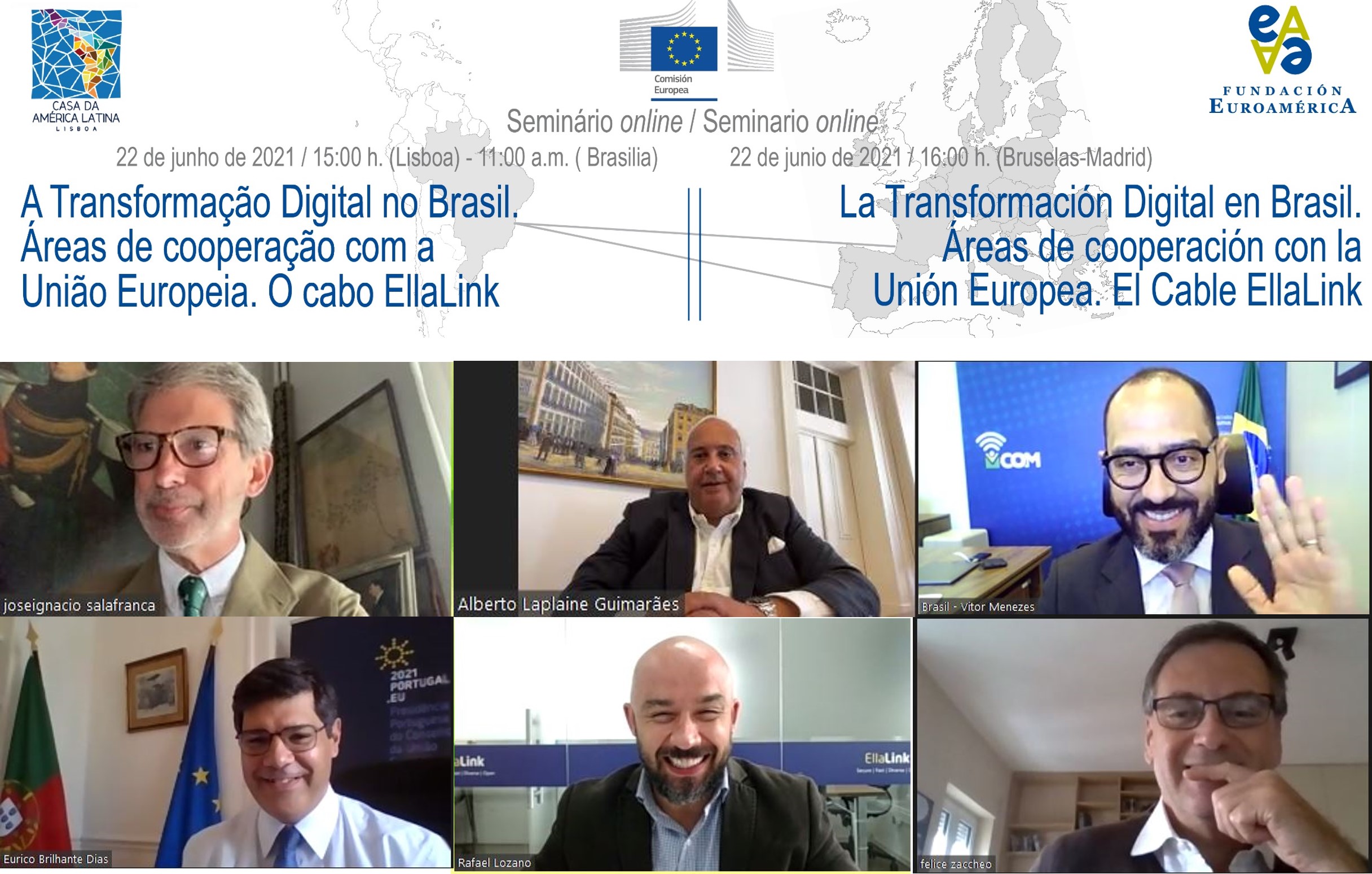 Para falar de tudo isto em profundidade, com especialistas de ambos os lados do Atlântico a Casa da América Latina, a Fundación Euroamérica e a Comissão Europeia – através da Direção para a América Latina e Caraíbas da Direcção-Geral das Associações Internacionais – organizam o seminário online “A Transformação Digital no Brasil. Áreas de Cooperação com a União Europeia. O Cabo EllaLink”.