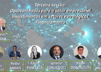 Tercera sesión: Oportunidades desde el lado empresarial. Inversiones en sectores estratégicos. Financiación / Terceira sessão: Oportunidades para o setor empresarial. Investimentos em setores estratégicos. Financiamento