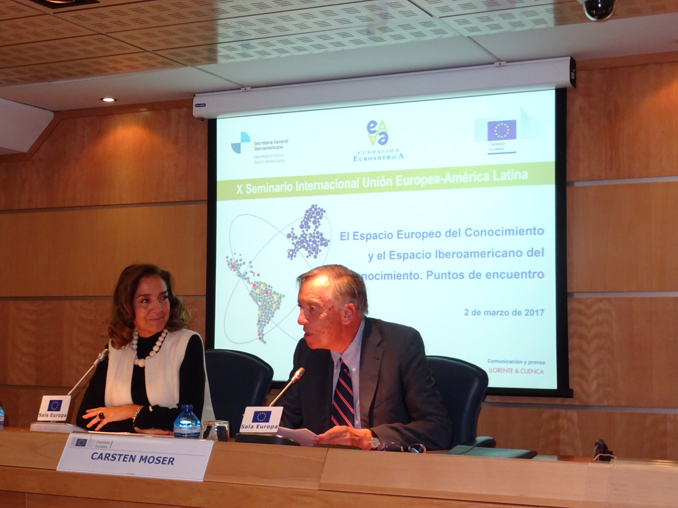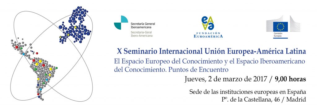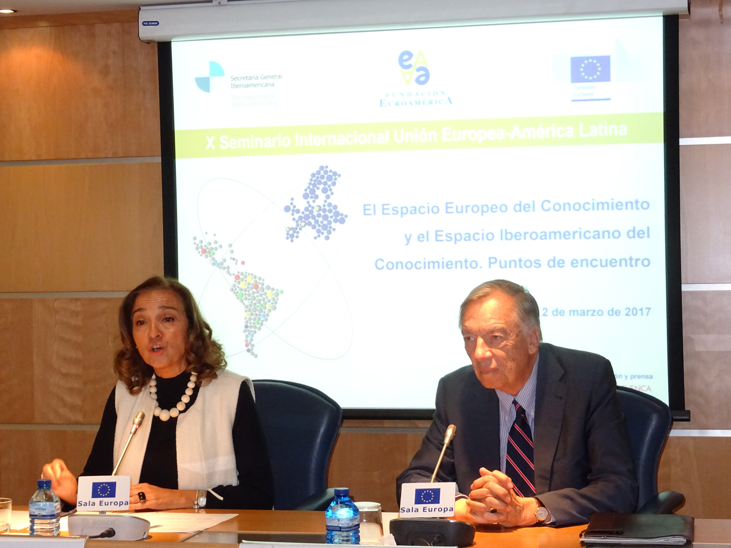 La sede de la Comisión Europea en Madrid vuelve a convertirse en lugar de encuentro entre Europa y América Latina. ‘El Espacio Europeo del Conocimiento y el Espacio Iberoamericano del Conocimiento. Puntos de Encuentro’ ha sido el tema del X Seminario Internacional Unión Europea-América Latina, organizado por la Fundación Euroamérica, con el apoyo de la Secretaría General Iberoamericana (Segib), y celebrado el pasado 2 de marzo.