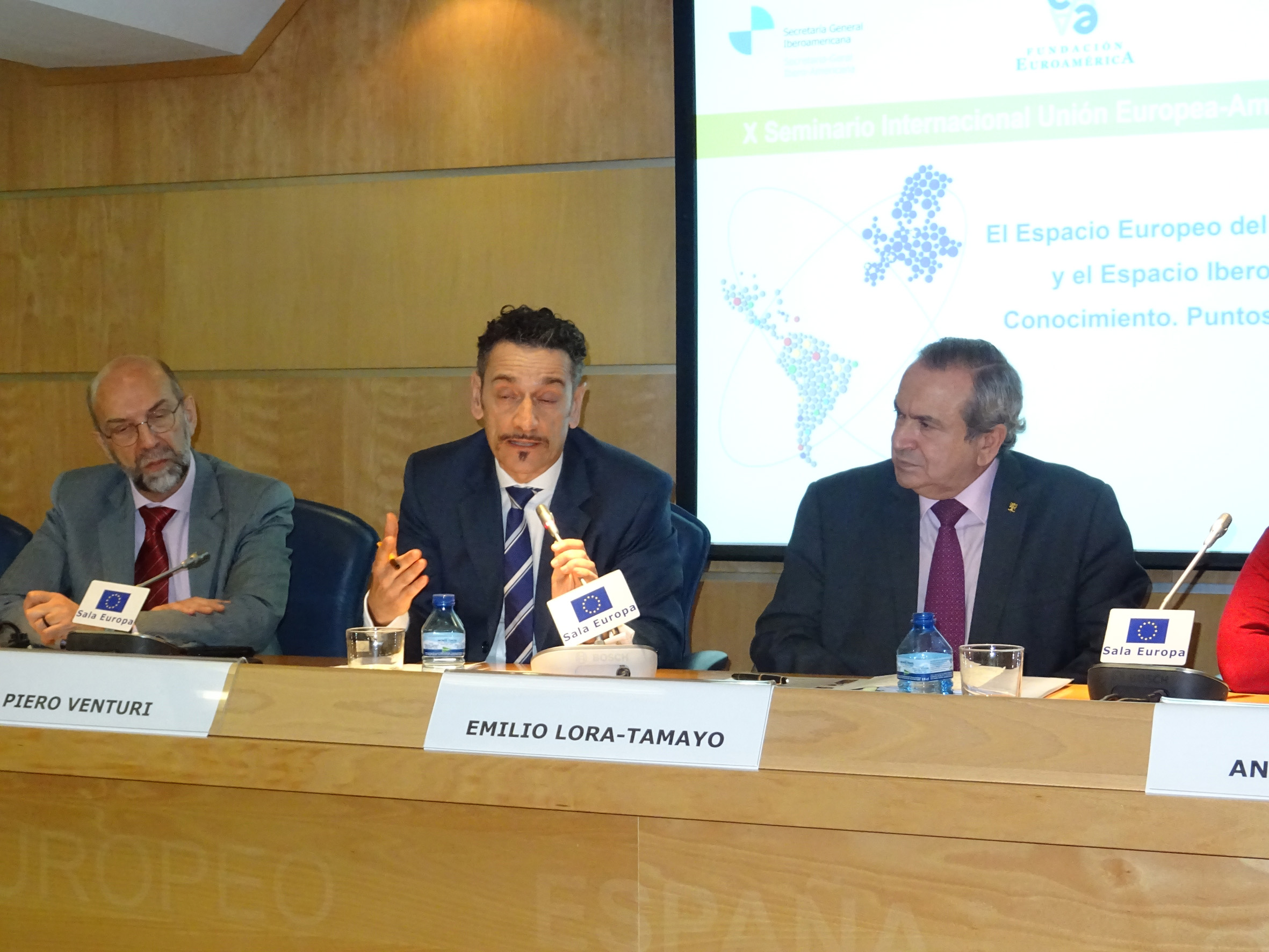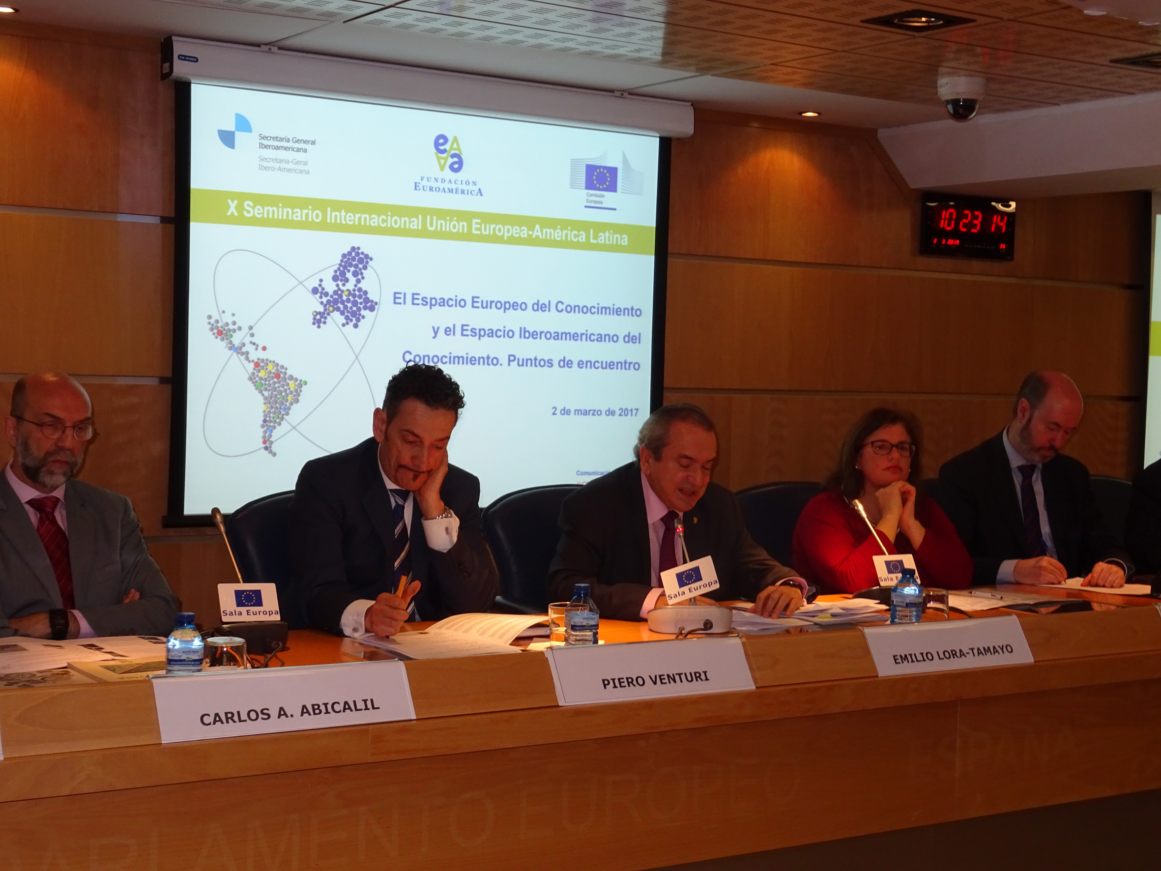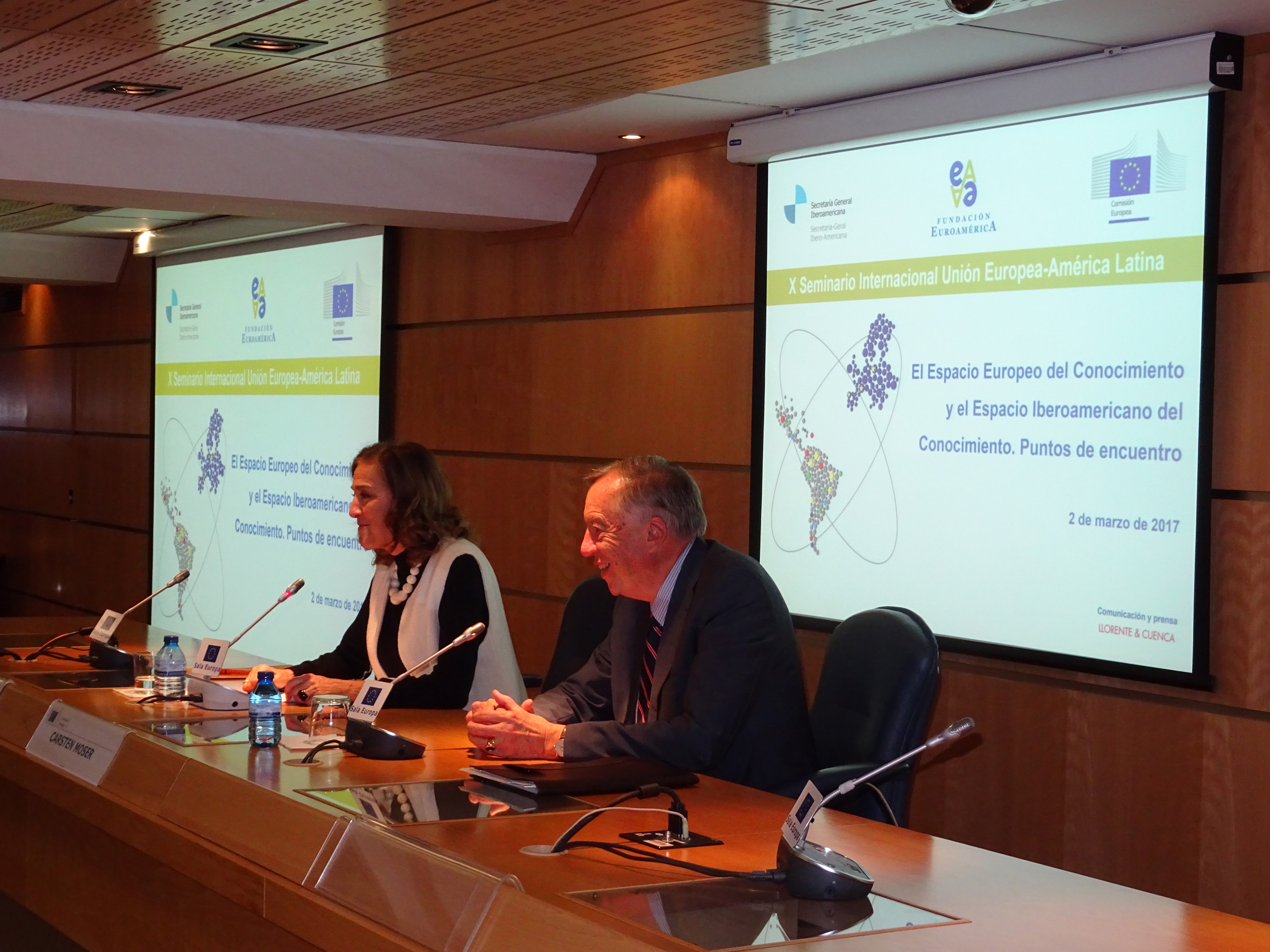 La sede de la Comisión Europea en Madrid vuelve a convertirse en lugar de encuentro entre Europa y América Latina. ‘El Espacio Europeo del Conocimiento y el Espacio Iberoamericano del Conocimiento. Puntos de Encuentro’ ha sido el tema del X Seminario Internacional Unión Europea-América Latina, organizado por la Fundación Euroamérica, con el apoyo de la Secretaría General Iberoamericana (Segib), y celebrado el pasado 2 de marzo.