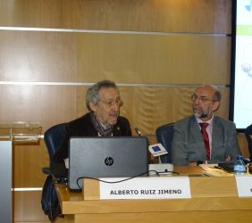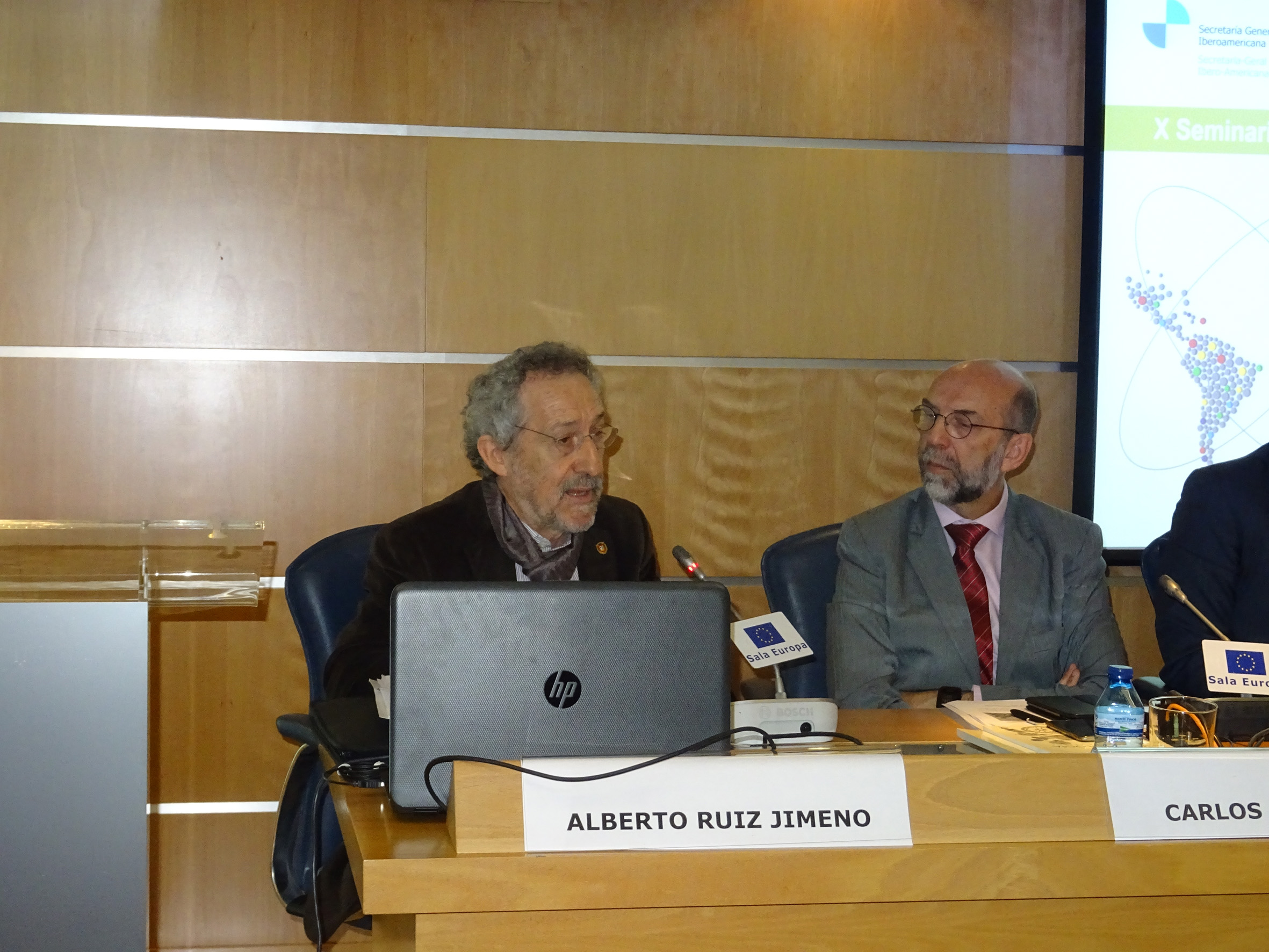 El catedrático de Física Atómica, Molecular y Nuclear Alberto Ruiz Jimeno expuso su experiencia como investigador europeo, principalmente en el CERN. Como explicó, este centro nació en 1954 por la necesidad que había de recuperar el espacio perdido en investigación en Europa. El impulso vendría, paradójicamente, de Estados Unidos, porque la mayor parte de investigadores europeos había emigrado con la guerra y querían reconstruir la situación. Ahora está formado por 22 países, más otros diez miembros asociados, además de otros países observadores. Ahí destacó que la participación de América Latina en el CERN es muy notable; e incidió sobre todo en los casos de México, que lleva participando desde los años 70, de Argentina y de Brasil, que está realizando una importante labor sobre todo en el análisis de datos.