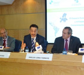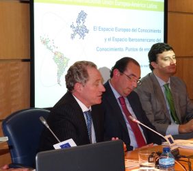 La primera mesa de la mañana, moderada por José Manuel Silva, vocal asesor de la Secretaría de Estado de Investigación, Desarrollo e Innovación, ahondó en las experiencias reales que ya existen el campo de la investigación y de las que aprender para transferir conocimiento entre los dos continentes. Algo que no es nuevo, como recordó oportunamente el primer ponente, Emilio Lora-Tamayo, presidente del Consejo Superior de Investigaciones Científicas (CSIC), quien se retrotrajo a los primeros navíos de Cristóbal Colón y aquellos primeros productos que se intercambiaron. Tras realizar un recorrido por la creación del Espacio Europeo del Conocimiento, proceso ralentizado en los últimos años por la crisis, llegó hasta la creación del Consejo Europeo de Investigación, ahora integrado en el Horizonte 2020, y que busca “reforzar la excelencia, el dinamismo y la creatividad de la investigación europea”, como recogen en su web oficial.