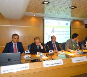 El primer ejemplo empresarial concreto llegó de la mano de Luis Fernando Álvarez-Gascón, director general de GMV Secure eSolutions, una multinacional que nació como una spin off universitaria en 1984. Destinada al ámbito de la investigación espacial y aeronáutica, fue Estados Unidos, donde trabajaron desde el inicio con la NASA, el primer país en el que se instaló. Ahora cuenta con 1600 empleados, tiene diez filiales y desarrolla dos tercios de su actividad en el ámbito internacional. Álvarez-Gascón recalcó “el papel que las transnacionales tecnológicas tienen en la transferencias de conocimiento porque fluye más el conocimiento dentro de una organización que entre fronteras”. Además, afirmó que el impulso público en la modernización de economía pasa no sólo por dar apoyo a la universidad, sino también atendiendo a la creación de un tejido empresarial innovador, para que el conocimiento no se quede sólo la universidad y dé el salto internacional”.