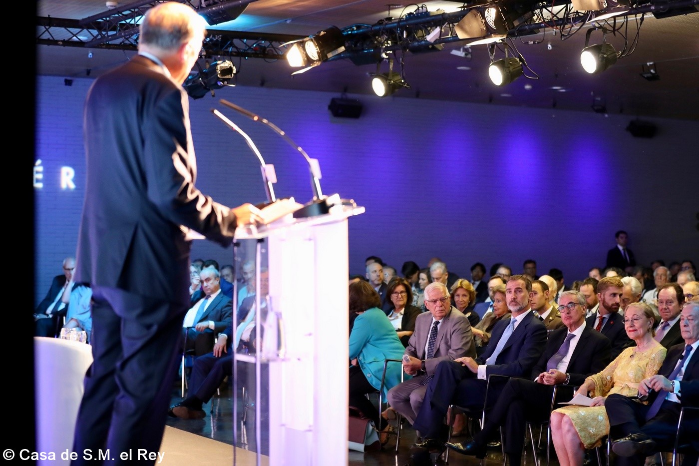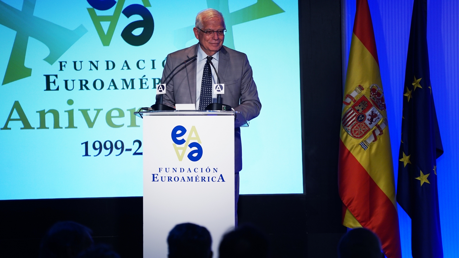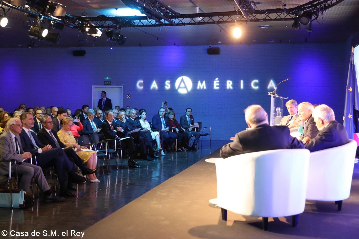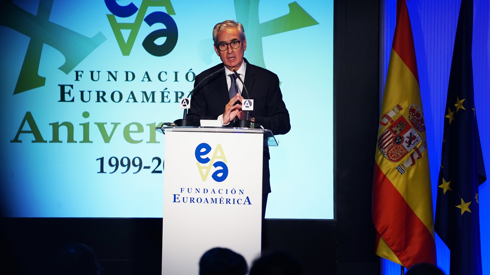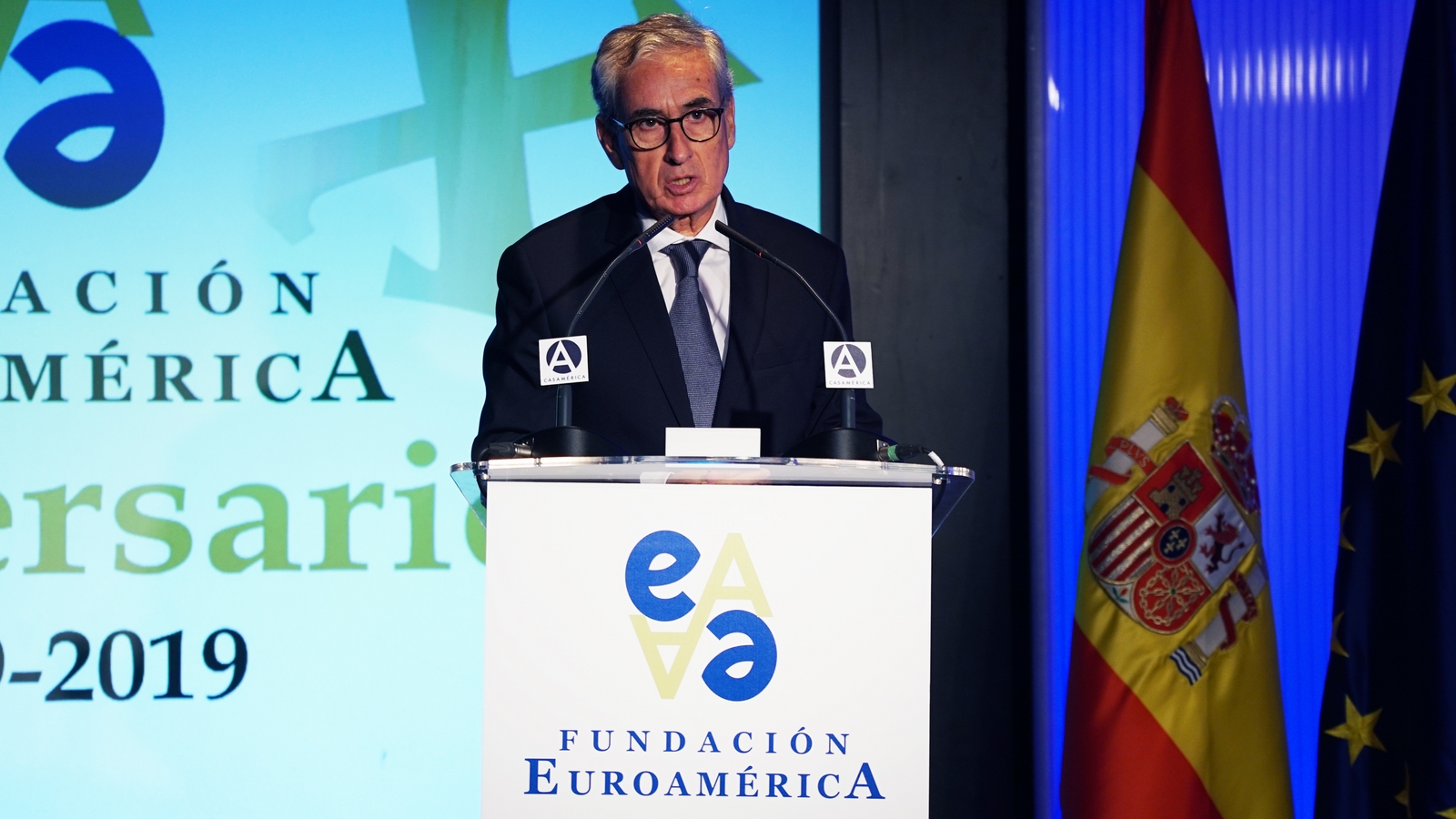 Casa de América. Madrid, 17.07.2019 Se cumplen 20 años de la creación de la Fundación Euroamérica. Y hace cinco, en mayo de 2014, tuve ya la satisfacción de poder celebrar su decimoquinto aniversario en uno de los últimos actos a los que asistí como Príncipe de Asturias. Así que permitidme que antes de nada felicite a todos los que hoy y a lo largo de las últimas dos décadas han trabajado para darle vida al noble propósito de la Fundación Euroamérica. Como bien sabemos, esta Fundación centra su actividad en un ámbito de la escena internacional que es esencial para España: las relaciones entre Europa y América. Desde esta orilla del Atlántico, España siempre ha aspirado a realizar una contribución sustancial a la relación entre ambos continentes, y el impulso de la Comunidad Iberoamericana de Naciones como amplio espacio para la concertación y la cooperación es buena prueba de ello. Porque ese impulso no está solo basado en nuestra especial conexión histórica, de lengua y cultura, en valores compartidos o en un interés económico privativo de España y Portugal; lo está también y de forma creciente en que lo creemos bueno para Europa -para la UE- y bueno para América Latina. Asumimos una responsabilidad actualizada, moderna y constructiva en el contexto de las relaciones internacionales. Además, esto no se reduce a unas directrices políticas o geoestratégicas de Estado, aunque estas son necesarias, indudablemente; y en nuestro caso, no es porque de alguna manera nos lo indique nuestra propia Constitución, que también. Hay que recordar, que los españoles -y también los portugueses- nos sentimos especialmente unidos a nuestros hermanos de Iberoamérica en el terreno de los afectos familiares, de lo emotivo. Nos importa de una manera más íntima lo que allá ocurre; un sentimiento que es -estoy convencido- de doble dirección. Y a partir de ahí, impregnados por ese vínculo humano, trabajamos por la construcción en todos los ámbitos posibles de una relación útil, responsable, respetuosa, equilibrada y con visión de futuro. En última instancia, la lengua o el espacio lingüístico común que compartimos con tantas naciones americanas nos posiciona en un lugar de especial cercanía tanto desde un punto de vista emocional, como desde una perspectiva cultural, económica y política en el mundo globalizado del siglo XXI. Al mismo tiempo, los Estados Unidos son igualmente un socio capital para España, y un país amigo por muchas razones… Pero una de ellas, naturalmente, es la herencia y presencia hispana tan importante y valiosa que tiene en muchas partes de su territorio, como tantas veces comprobamos en nuestras visitas. Por eso, cuando hablamos tanto de la importancia de las relaciones trasatlánticas, no debemos olvidar que a las que surgen entre los países de Occidente, esencialmente entre Europa y Norteamérica, tras la II GM y durante la guerra fría, debemos añadir la que representa hoy la gran familia iberoamericana y, por tanto, también la relación de Europa con América en su conjunto. Sinceramente, ese gran espacio puede y debe representar una contribución cada vez más importante al desarrollo equilibrado y pacífico de las relaciones internacionales, y a la capacidad de enfrentar los grandes desafíos de la agenda global. Desde su creación en 1999, la Fundación ha servido de punto de encuentro para acercar a europeos y americanos entre sí, debatiendo acerca de los principales temas en la agenda de la relación bilateral, particularmente a través de sus foros anuales. Madrid, Bruselas, Lima, Buenos Aires, La Antigua, Lisboa, Bogotá, Santiago de Chile, Miami, México D.F. y un sinfín de ciudades más han sido testigos tanto de este tipo de eventos como de distintos seminarios específicos donde figuras de incuestionable relevancia han aportado su experiencia y su conocimiento. Es absolutamente clave que organizaciones de esta naturaleza sigan trabajando en una línea que, sin duda, complementa el trabajo de las instituciones públicas. Para que el trabajo de estas organizaciones sea efectivo hacen falta liderazgos. Por ello, me gustaría referirme a la figura de Benita Ferrero-Waldner, quien deja la Presidencia de la Fundación tras un gran mandato: Benita es una de las grandes europeístas de nuestro tiempo; una figura de gran magnitud a la que no vamos a descubrir hoy aquí. Retirada ya de sus quehaceres diplomáticos, es ejemplo de generosidad, como ha demostrado a lo largo de los años al frente de la Fundación. No lo olvidemos, además de su paso por el sector privado, ha dejado su impronta también en Naciones Unidas, ha sido Secretaria de Estado, Ministra de Asuntos Exteriores y candidata a la presidencia de Austria, así como Comisaria Europea de Relaciones Exteriores y Comisaria de Comercio y Política Europea de Vecindad. Se trata de un bagaje profesional de altísima excelencia caracterizado por el servicio público. Benita, muchas gracias por tu labor al frente de la Fundación y por tu amistad y cariño hacia España, que también consideras en parte tuya. Tu entusiasmo y tu liderazgo a lo largo de este tiempo han sido encomiables. También por tu apoyo a la Corona, que te agradezco profunda y sinceramente. Ahora la Fundación ha tenido el gran acierto de elegir como sucesor a Ramón Jáuregui. Ramón ha tenido una larga e intensa trayectoria en la política española en todos los niveles. Además, es un magnífico y experimentado conocedor de las relaciones entre Europa y América. No en vano, en su condición de eurodiputado, formó parte de la Delegación de la Asamblea Parlamentaria Euro-Latinoamericana en la 7ª y 8ª legislaturas del Parlamento Europeo, siendo su Presidente durante los últimos cinco años. Estoy seguro de que pondrá todo su empeño, su vocación de servicio, su saber y su acreditada profesionalidad en esta nueva e ilusionante responsabilidad. Termino ya, pero no sin reiterar antes mi ag