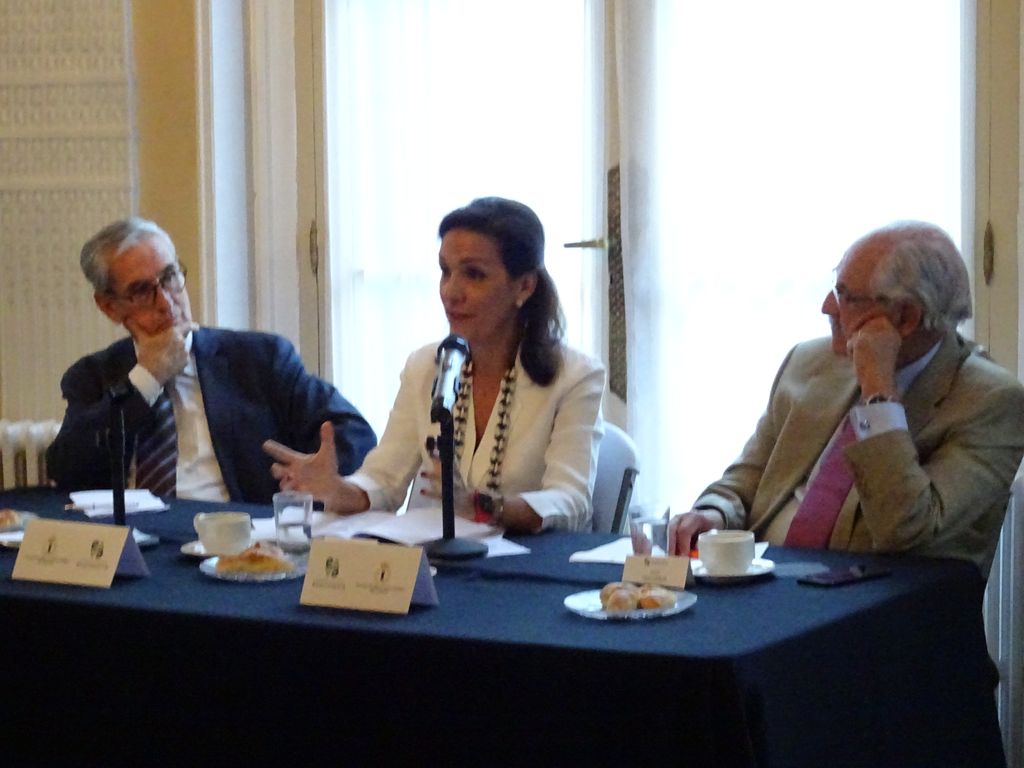 Con la cercanía y el apoyo incondicional que desde hace muchos años, y desde otras responsabilidades en la Comisión Europea, Cristina Lobillo ofrece a la Fundación Euroamérica, se celebró este coloquio. Comenzó su intervención con un análisis del contexto internacional y las consecuencias que tiene para la Unión Europea, en especial en lo que afecta a su suministro de energía y a la subida de precios en este entorno. Durante su exposición destacó la autonomía estratégica que busca la Unión Europea en materia energética, para lo que señaló la apuesta decidida por acelerar el proceso de transición energética, así como el objetivo de diversificación y la apertura del foco a las “materias críticas” como el litio, el cobalto o el hidrógeno verde. Habló de los objetivos marcados por la Unión Europea en renovables y de la próxima Cumbre del Clima, COP28 en Dubai. Señaló que para lograr esos ambiciosos objetivos es necesaria la asociación de Europa con América Latina y el Caribe (la UE ya ha firmado memorándum con algunos países de la región) así como la colaboración del sector público con las empresas. Tras su interesante intervención, tuvo lugar el coloquio con los asistentes a la reunión, quienes le formularon un gran número de cuestiones que no dudó en contestar, enriqueciendo así el debate