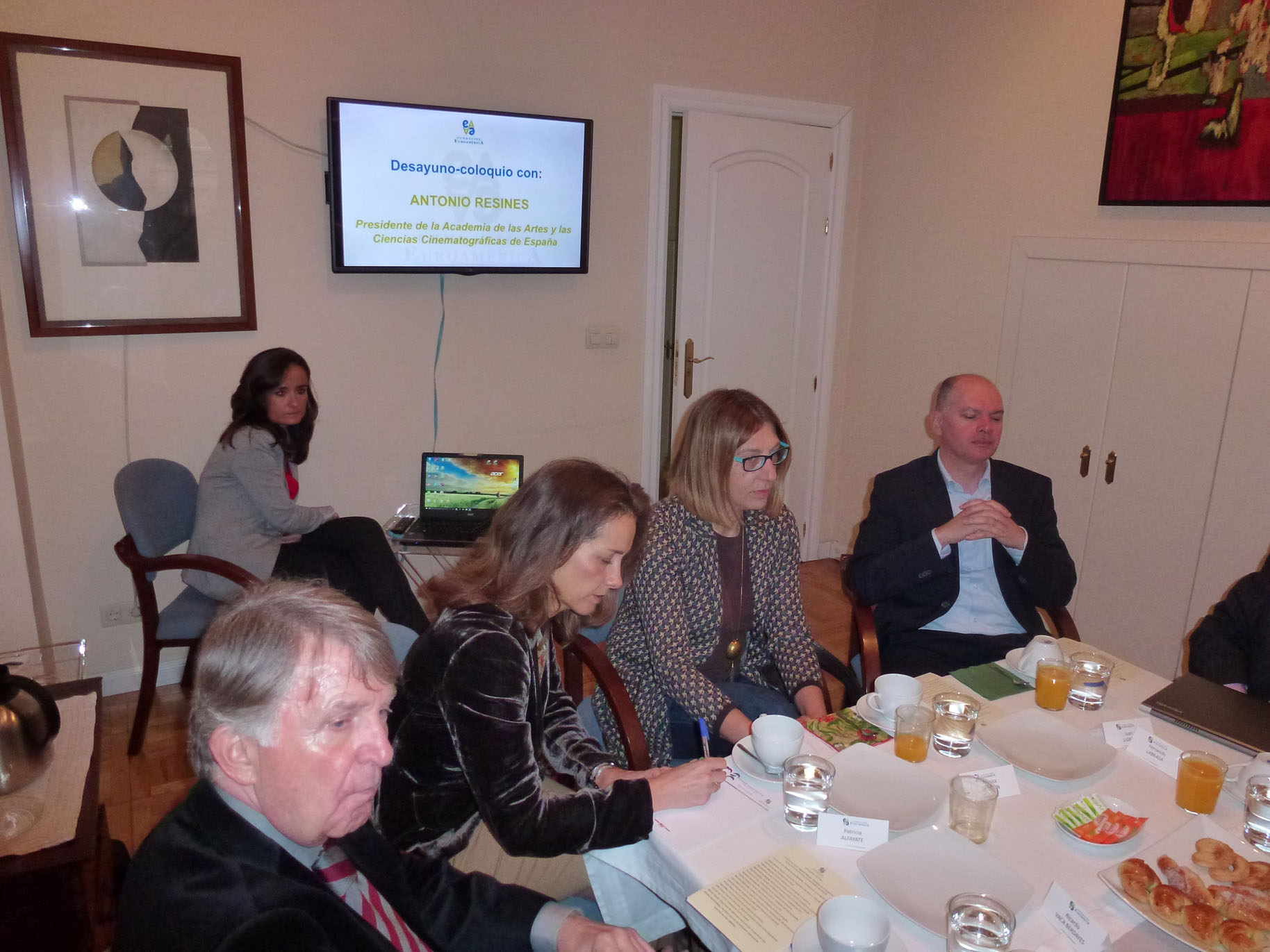 En el turno de preguntas de los asistentes se creó un interesante coloquio en el que se profundizó en algunos puntos de la intervención inicial del Sr. Resines y se tocaron otros temas. El Presidente de la SGAE, J. Luis Acosta, nombró el Portal América que la Sociedad que preside ha creado para aprovechar el idioma español. Se habló de la transformación digital y de la necesidad de adaptarse a ella, de la adopción de medidas para proteger el talento, de la legislación europea en materia audiovisual, y se profundizó en la necesidad de realizar una campaña de educación que afecte tanto a jóvenes como a adultos, para concienciar del gran daño que la piratería hace en la industria del cine y que afecta a todos los profesionales que participan de ella.