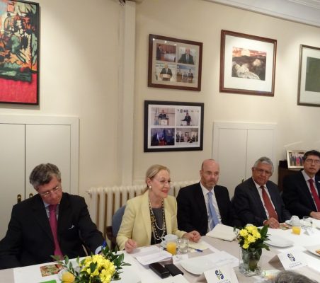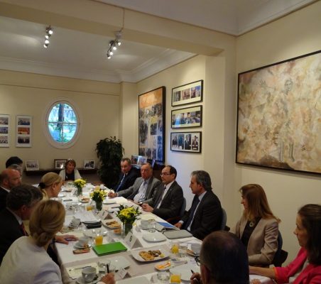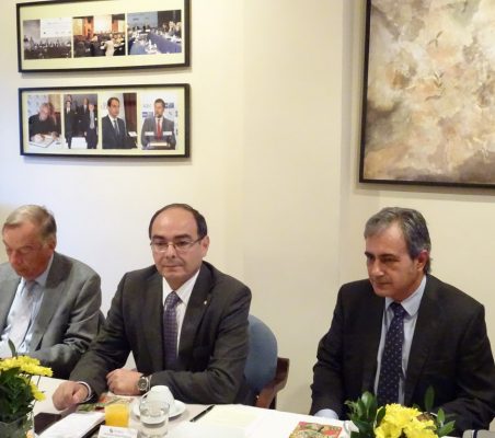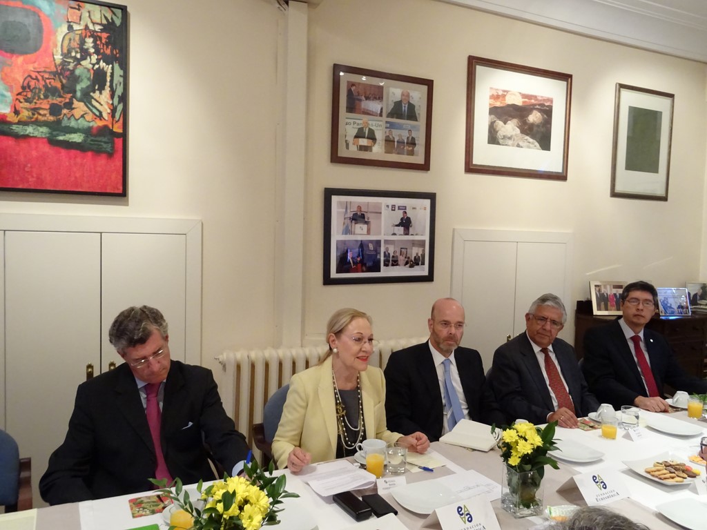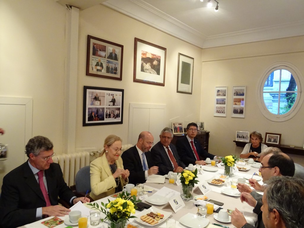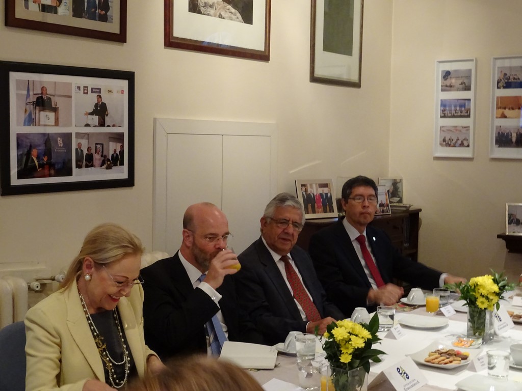 El Embajador continuó su exposición indicando la apuesta del gobierno de su país por la apertura al exterior y la integración comercial en la región, así como la firma de acuerdos con otros países y áreas, poniendo en relieve el deseo de la consecución del TLC de la Unión Europea con el Mercosur.