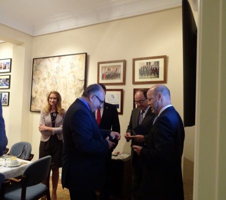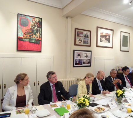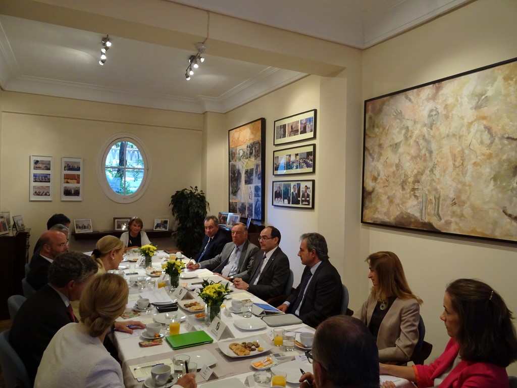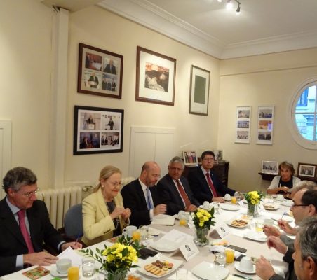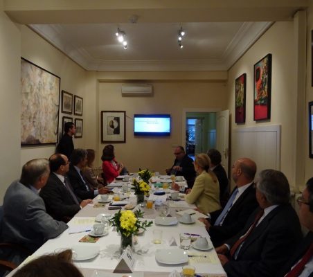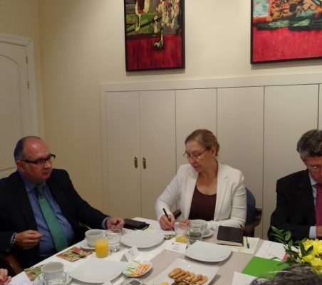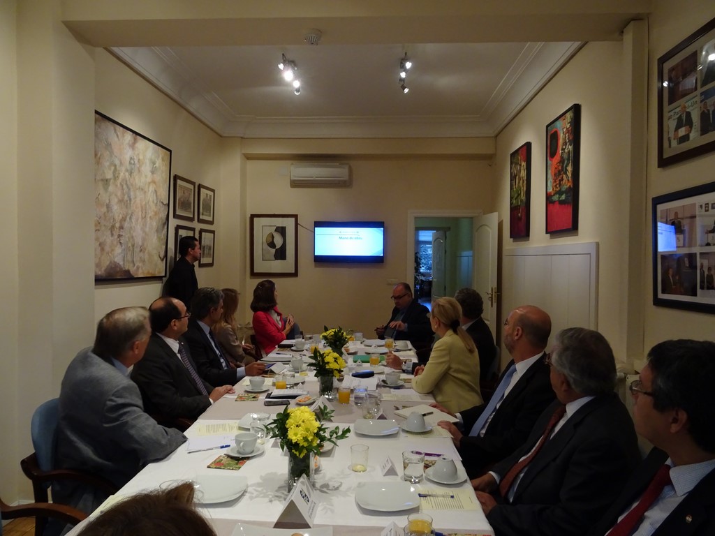 El desayuno comenzó con la proyección de un breve vídeo que expone de manera brillante la situación actual del país americano, que se puede consultar en este mismo espacio. Tras él, el Embajador Rivas desarrolló los puntos más importantes de la realidad paraguaya, sin olvidar sus principales desafíos, así como sus riquezas más importantes.