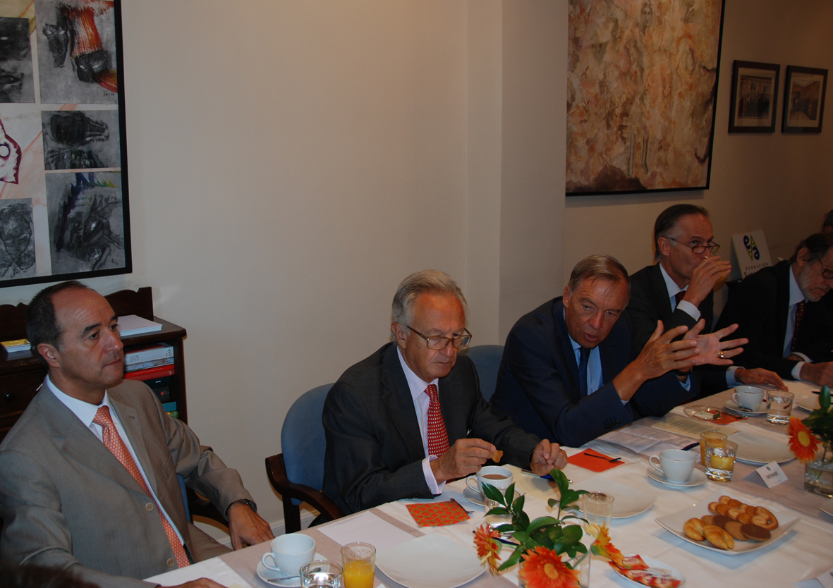 En un interesante desayuno en el que, por primera vez, contamos con dos invitados de honor, comenzó su intervención Carsten Moser quien comentó la interesante campaña electoral desarrollada en Alemania, que ha suscitado un enorme interés en la ciudadanía, lo que redundará en un alto nivel de participación en las urnas. Moser comenzó comentando que caben pocas sorpresas respecto de la victoria de Ángela Merkel, siendo la gran incógnita si los Liberales van a obtener el necesario 5% que es necesario para tener opción a una coalición como en la actualidad. Se destaca la importante existencia de líderes de opinión en Alemania, como son los filósofos Peter Sloterdejk, Rainer Frost y Jürgen Habermas, situación que no se da en España. Respecto del próximo gobierno a formar por la Sra. Merkel y su enfoque más o menos europeísta, será importante ver si sigue contando con dos políticos muy influyentes en el actual gobierno alemán: Ursula von der Leyen, Ministra de Trabajo y Asuntos Sociales, con un gran poder de comunicación y partidaria de hacer reformas, por lo que puede tener detractores ya que muchas personas no son partidarios de reformas y la consideran demasiado socialdemócrata y Wolfgang Schäuble, Ministro de Finanzas, con 70 años y gran experiencia parlamentaria, es muy apreciado y destaca su visión europeísta. Von Plettenberg está de acuerdo con la relevancia de estas dos últimas personas mencionadas por Carsten Moser. Comenta asimismo que echa en falta una visión de futuro de la Europa de 2020. Apunta que, a pesar de que su país tiene una cifra de empleados envidiable (41 millones de personas), así como la de paro juvenil -que no supera el 7-8%- existe un gran problema, sobre todo en algunas zonas del este, para cubrir determinados puestos de trabajo por razones demográficas y porque se está produciendo una fuga de talentos de estas zonas. Los cálculos para el 2020 son problemáticos con escasez de personal cualificado en ingenierías, medicina, personal sanitario etc… También habló de la importancia de un buen sistema de educación. El éxito alemán en su mayoría no es fruto de unas pocas mentes excepcionalmente brillantes, sino que la innovación alemana se nutre de mandos intermedios con formación dual. En Alemania se puede optar por realizar el bachillerato, tras el que se ingresa en la Universidad, o bien por la formación dual por la que a los 15 años se opta por la formación profesional. En parte rompió una lanza por los minijobs, muy implantados en Alemania, que aunque sean de bajo importe (450€), analizando los colectivos que los reciben, una gran parte son para amas de casa y estudiantes y suponen un dinero extra para las familias. Para terminar su exposición, comentó que, a pesar de los últimos años de bonanza de la economía alemana, el gobierno no ha conseguido cuadrar sus cuentas en lo que se refiere al déficit y no se ha aprovechado para hacer inversiones en áreas fundamentales como son las infraestructuras cuya calidad ha descendido en los últimos años. Con posterioridad se entabló un interesante coloquio con los asistentes, en el que se trataron temas como las grandes y productivas discusiones que se llevan a cabo en Alemania entre todos los partidos para sacar una ley nueva adelante, en oposición a lo que ocurre en España; la disyuntiva sobre una Europa alemana o una Alemania europea; por qué el tema de Europa apenas se mencionó la campaña de las elecciones alemanas; la importancia de las próximas elecciones al Parlamento europeo, sobre todo por el cada vez mayor euroescepticismo; las diferencias entre el actual Estado autonómico español y un Estado federado. |