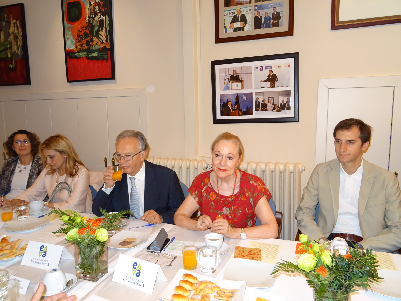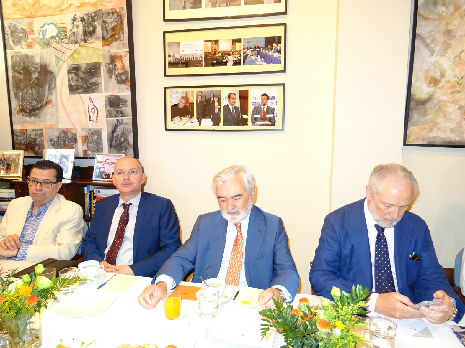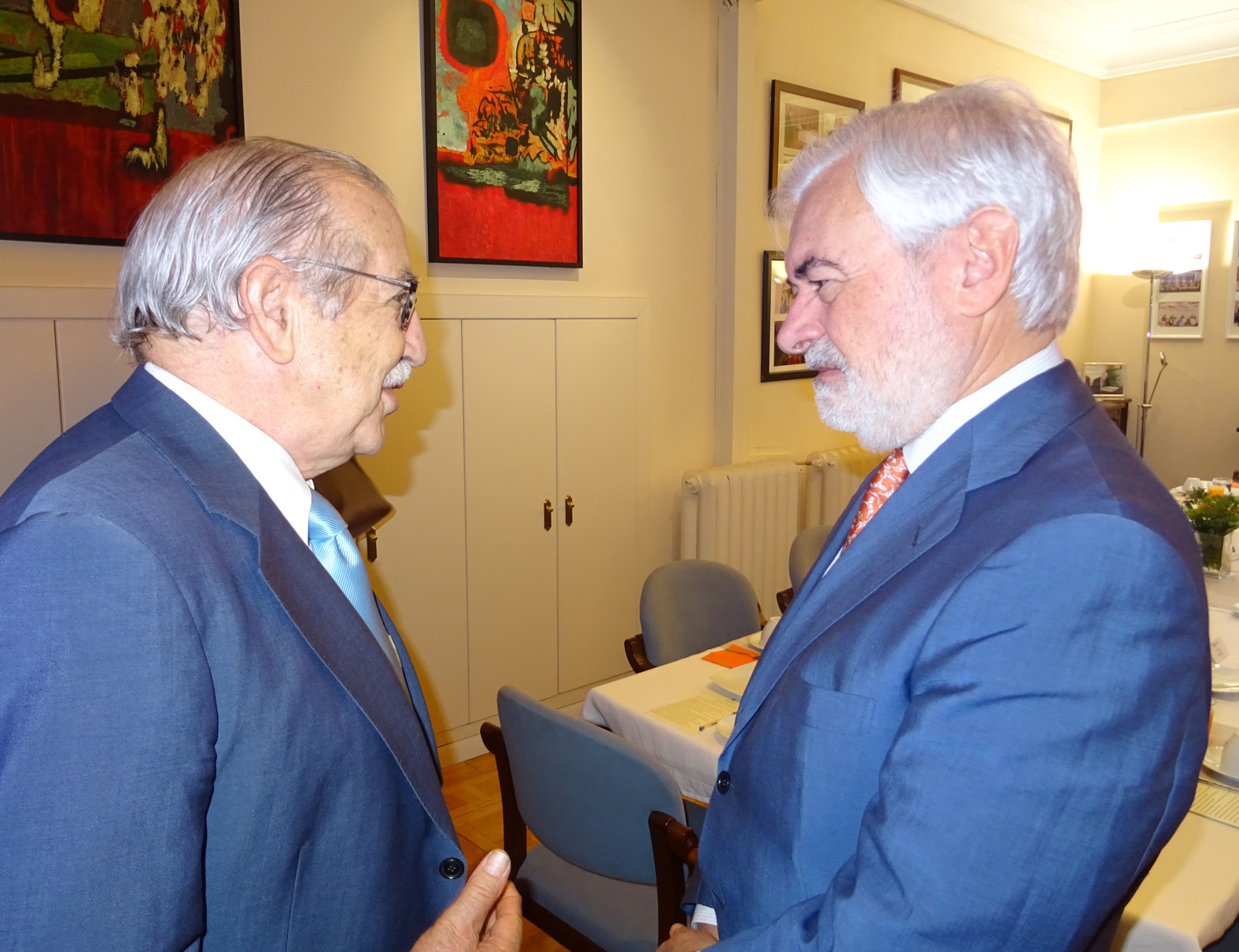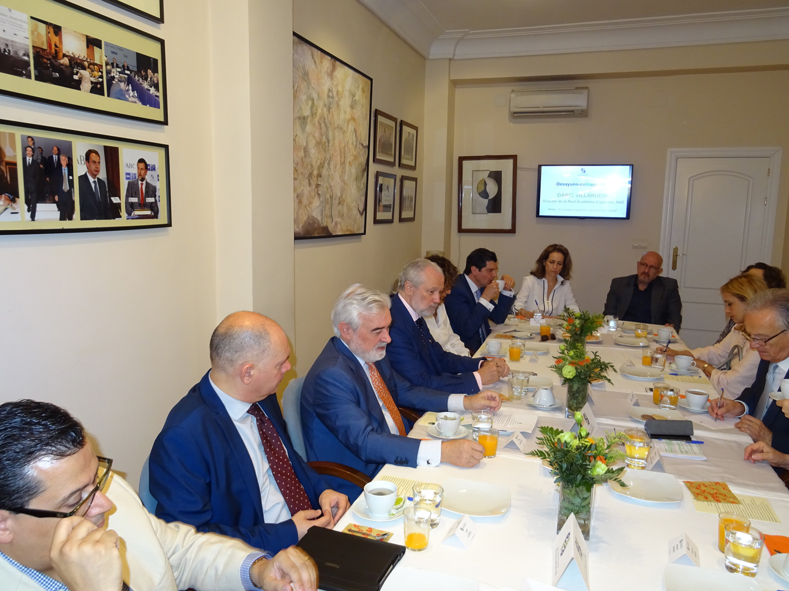 Tras su intervención, comenzó el coloquio con los asistentes al desayuno en el que se hablaron de diversos temas como las oportunidades estratégicas del español y si el español tendría que convertirse en política de Estado en España; la influencia del español desde el punto de vista cuantitativo versus el punto de vista cualitativo; el creciente impulso del español en los Estados Unidos en áreas como la política, televisión, prensa, empleo, empresa, música o el deporte; ventajas e inconveniente de la simplificación de la lengua española; la relación del español y el portugués; la paulatina desaparición del español en Filipinas; las oportunidades que, para el español, suponen determinados desafíos en el mundo, como el Brexit o la nueva administración de Estados Unidos o la percepción de la Academia por la sociedad, entre otros temas.