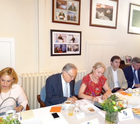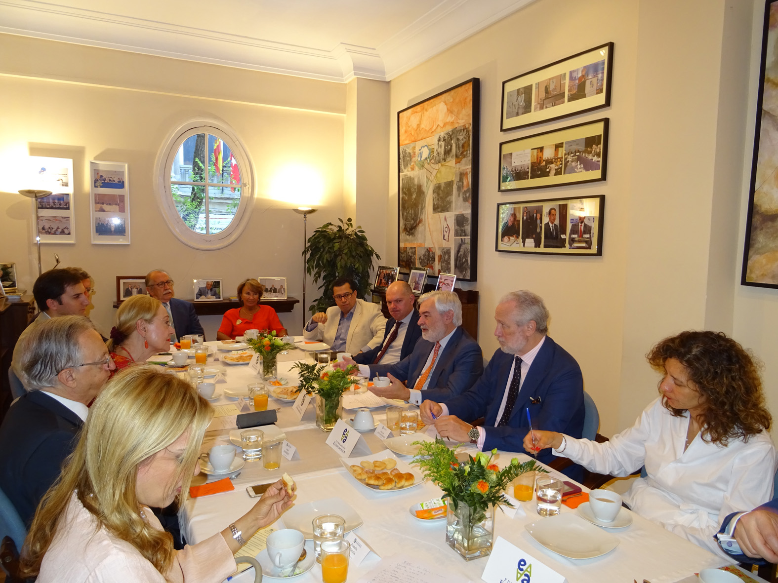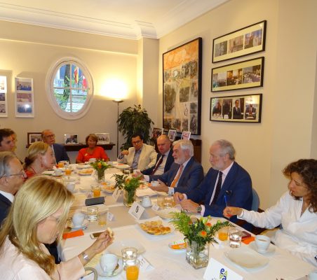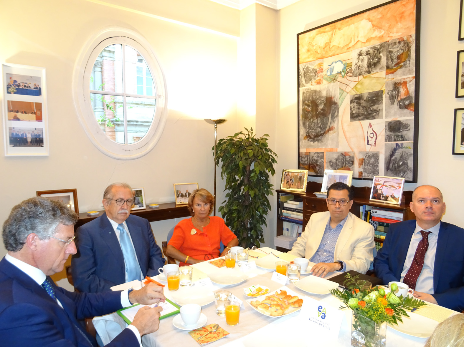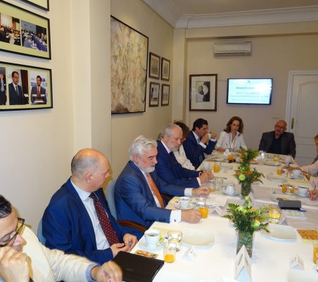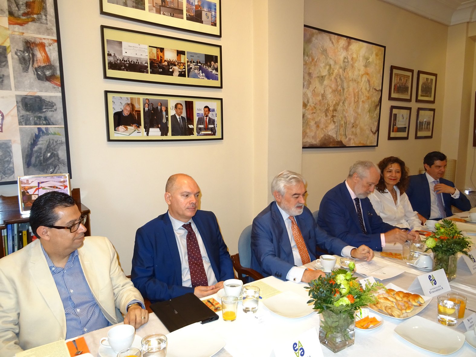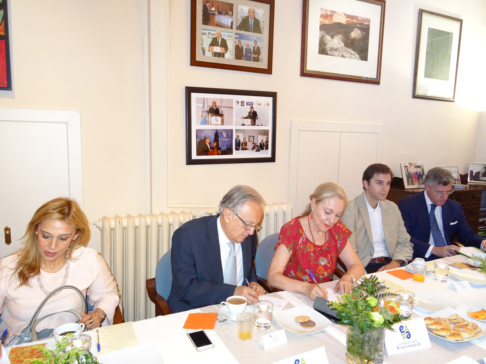 Tras su intervención, comenzó el coloquio con los asistentes al desayuno en el que se hablaron de diversos temas como las oportunidades estratégicas del español y si el español tendría que convertirse en política de Estado en España; la influencia del español desde el punto de vista cuantitativo versus el punto de vista cualitativo; el creciente impulso del español en los Estados Unidos en áreas como la política, televisión, prensa, empleo, empresa, música o el deporte; ventajas e inconveniente de la simplificación de la lengua española; la relación del español y el portugués; la paulatina desaparición del español en Filipinas; las oportunidades que, para el español, suponen determinados desafíos en el mundo, como el Brexit o la nueva administración de Estados Unidos o la percepción de la Academia por la sociedad, entre otros temas.
